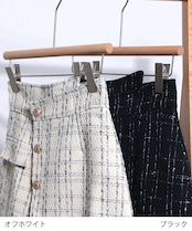 ツイード調のチェック柄が上品な印象を与えるハイウエストのラップ風ミニスカパン。