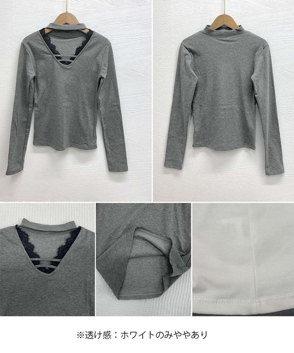 チョーカー風 カットソー レース付き Tシャツ