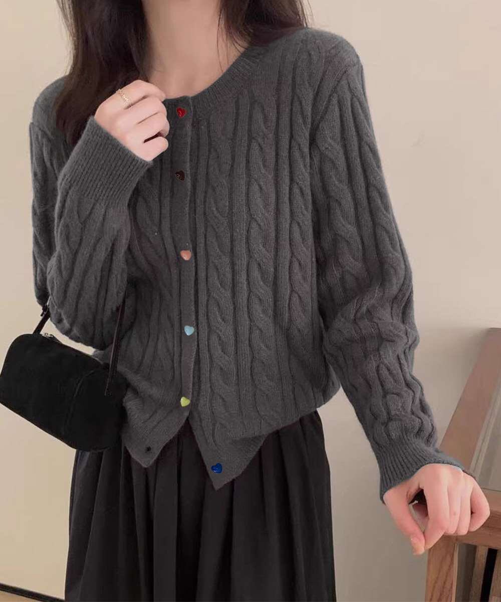 キーワード:着やせトップス 丸首ニット羽織 韓国風カーディ長袖