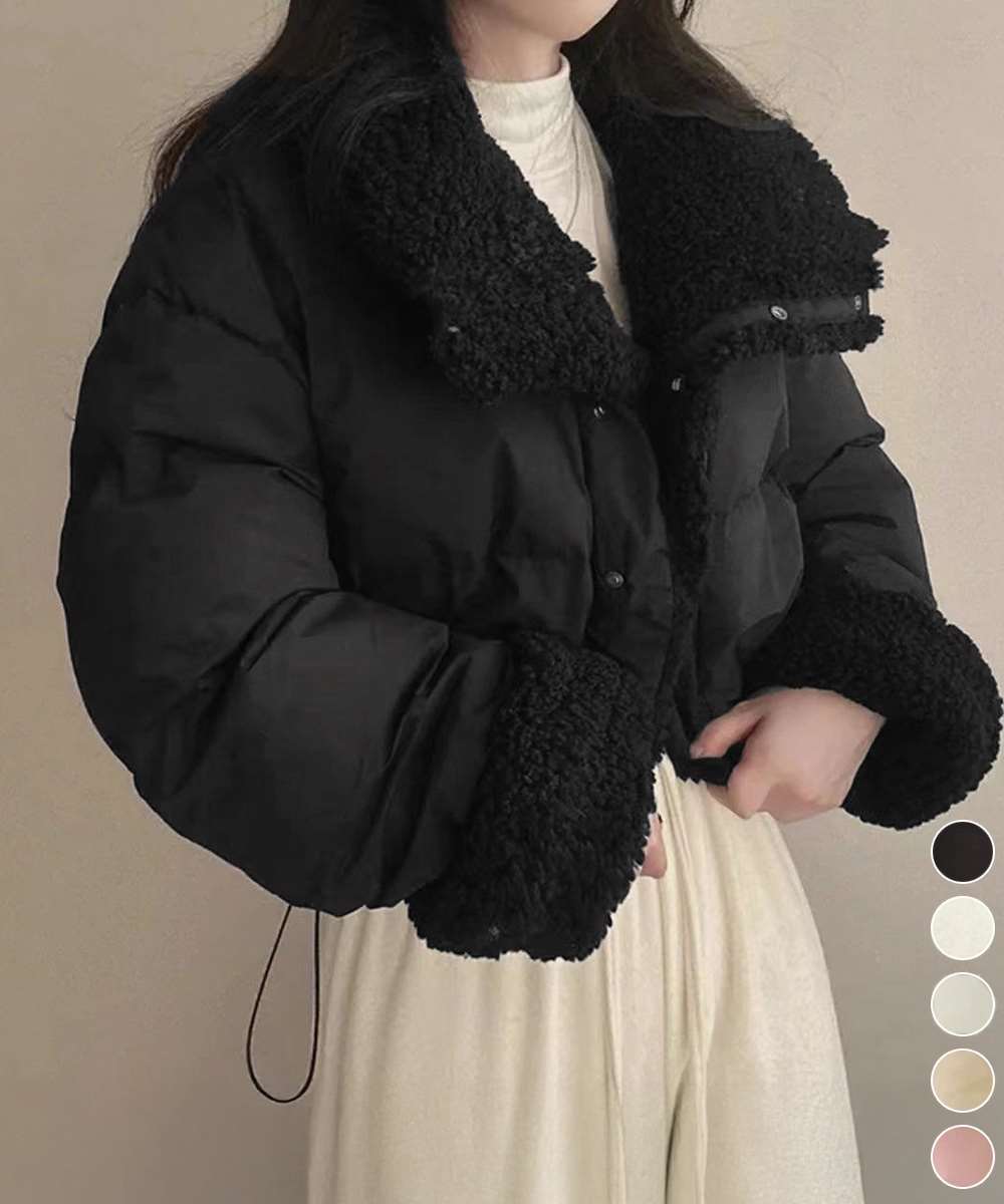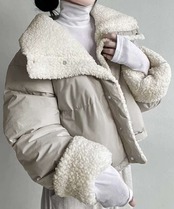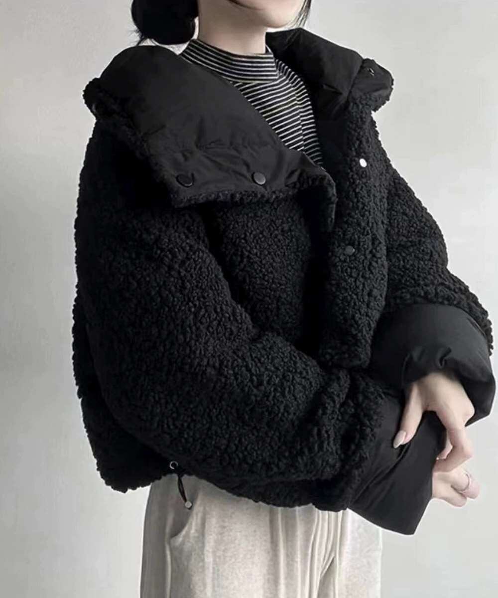 シンプルで洗練されたデザインと、ふわふわのボア素材が魅力のリバーシブルジャケット。