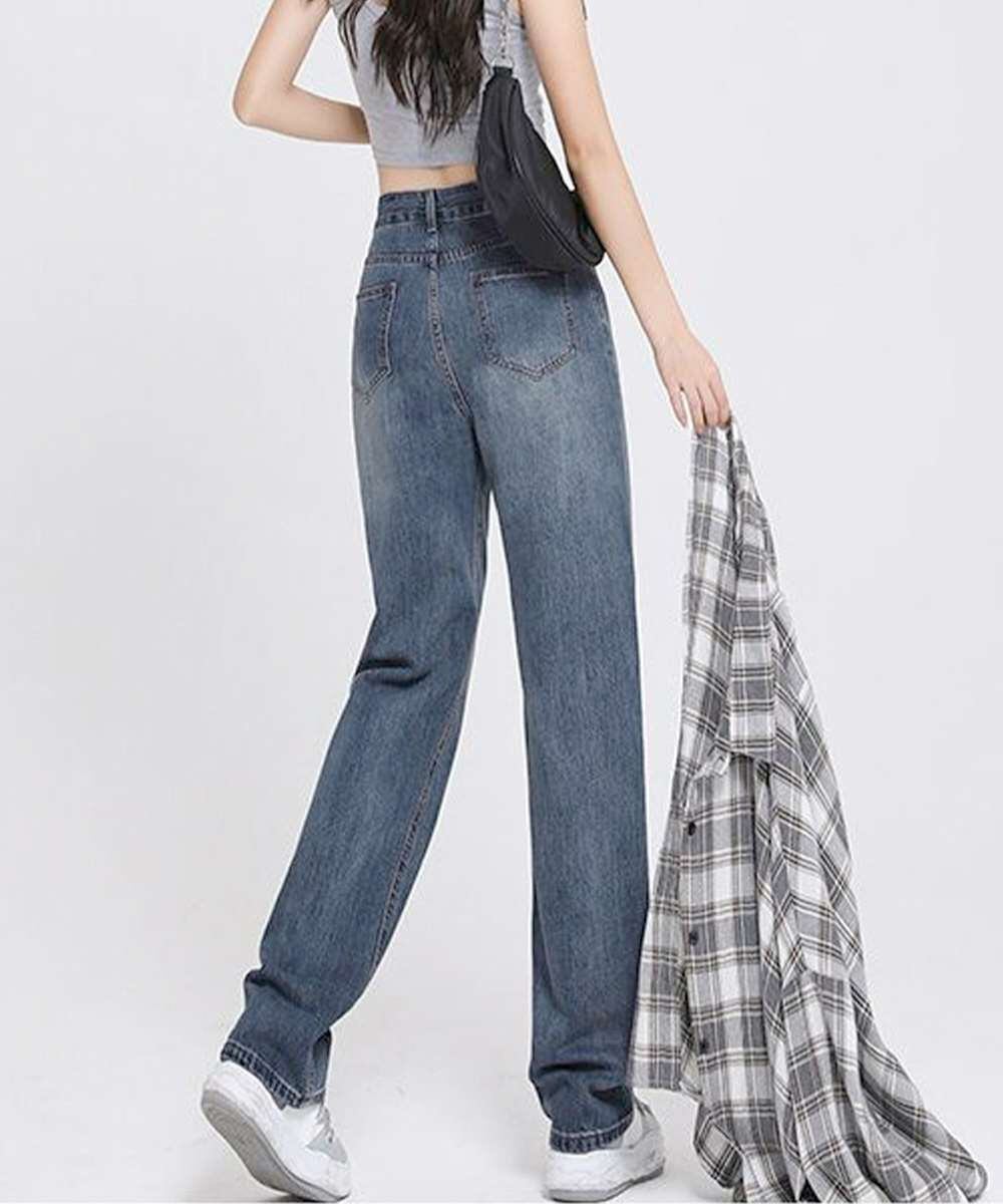 ハイウエスト仕様とゆったりシルエットで脚をすっきり見せ、スタイルアップも期待できる。