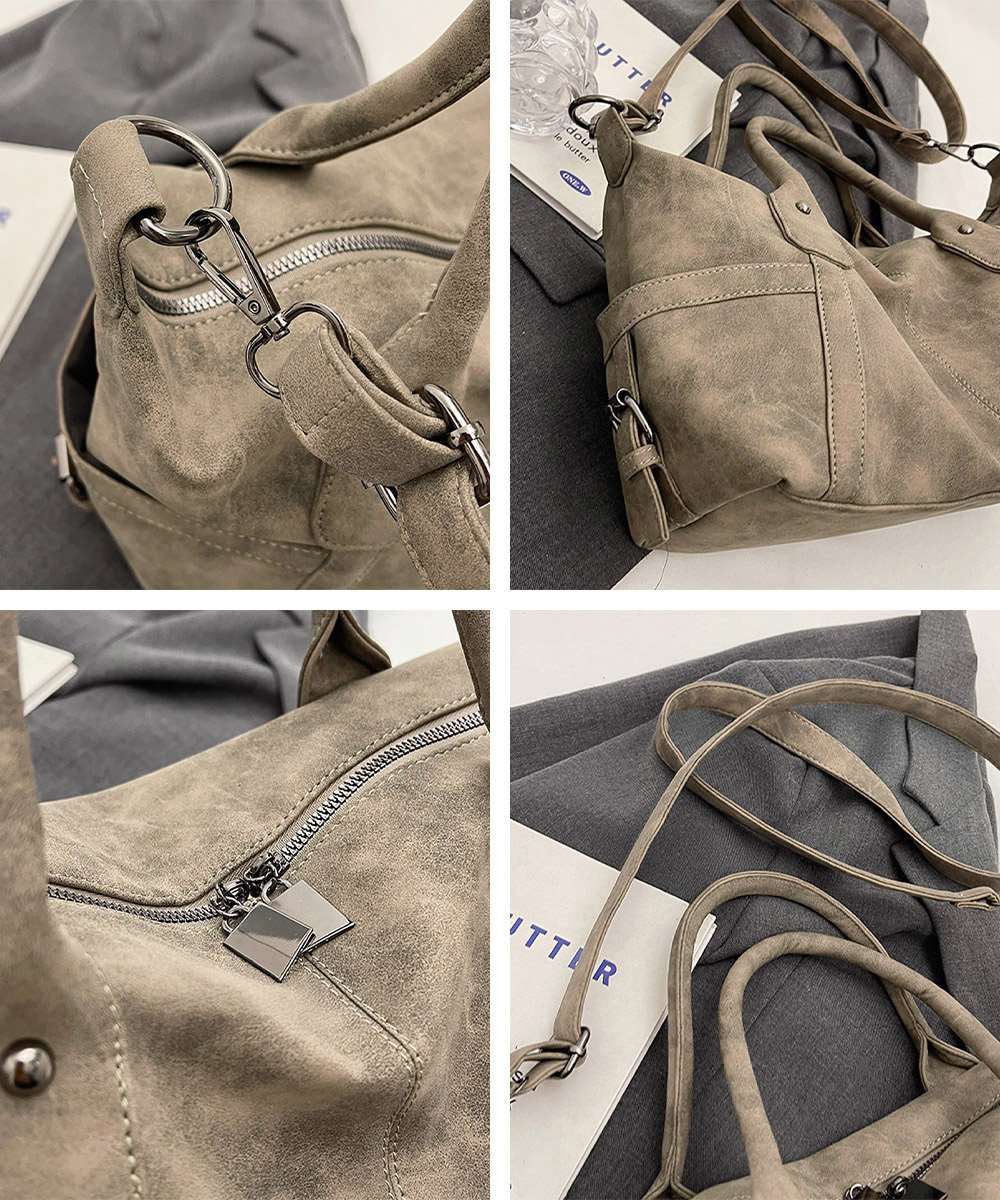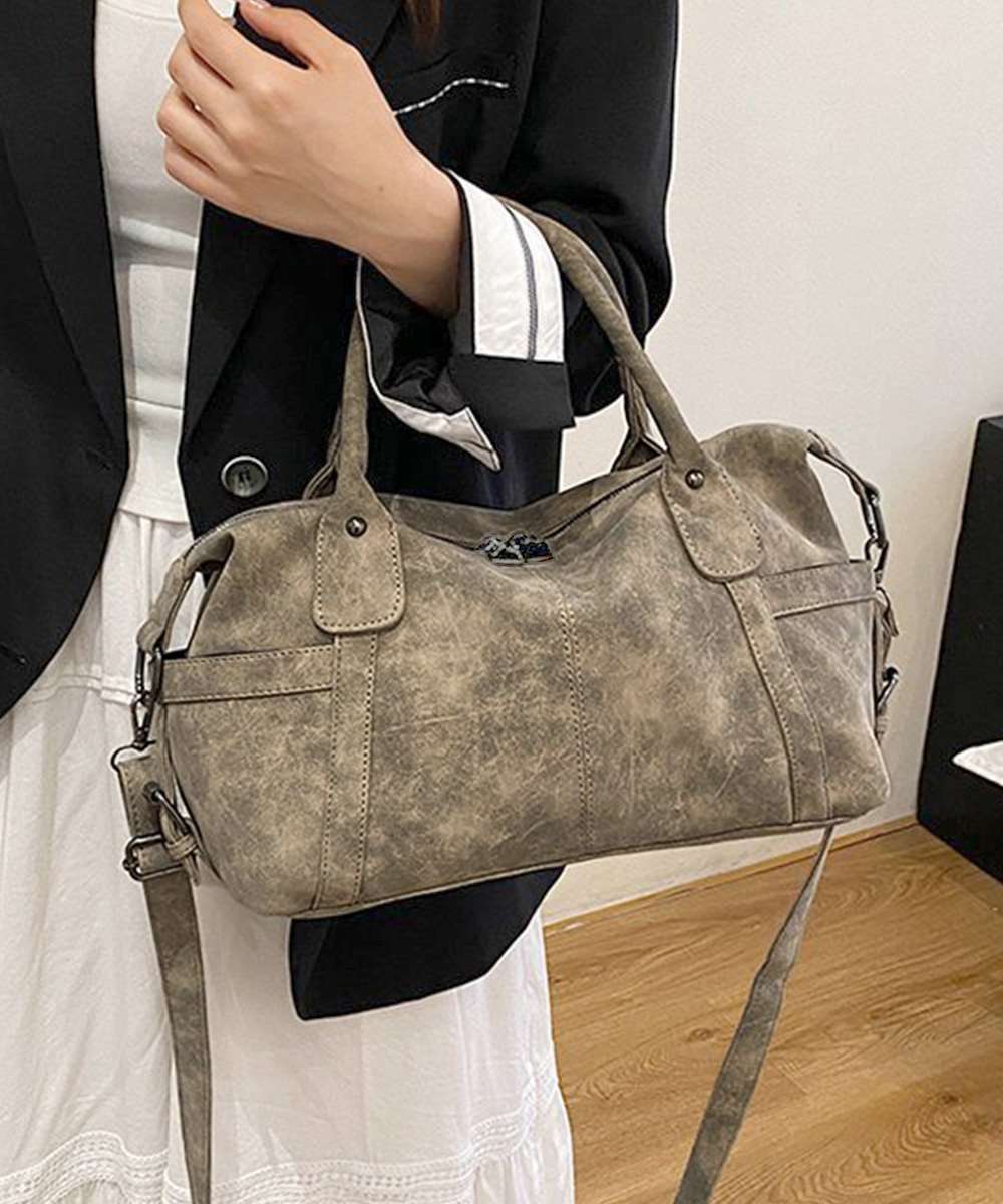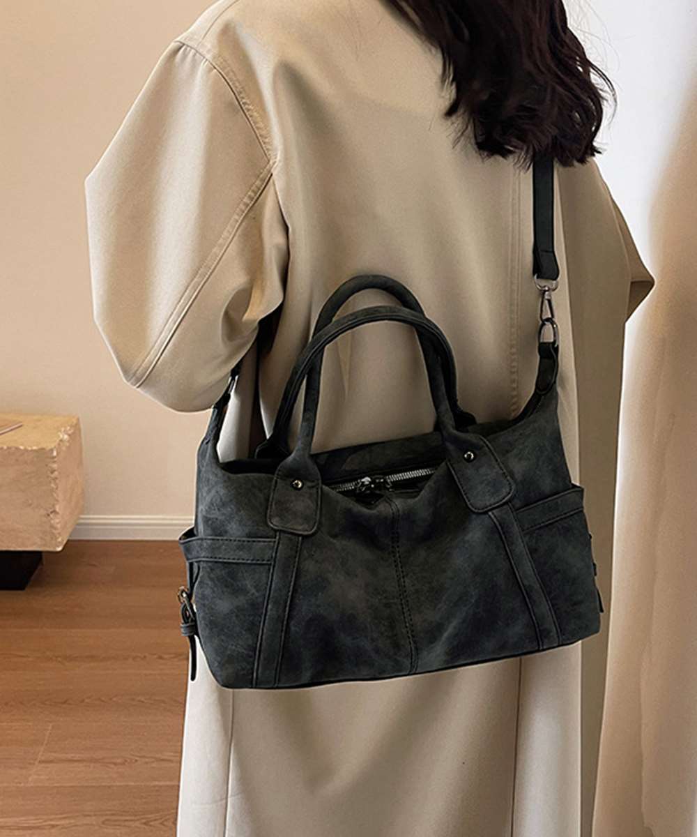 柔らかなフェイクレザーで仕上げた、ヴィンテージライクなトートバッグ。