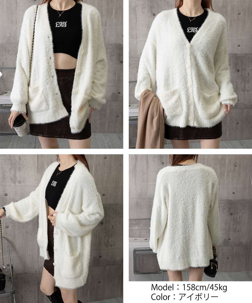 ふわふわとしたモヘアタッチ素材が魅力のオーバーサイズカーディガン。