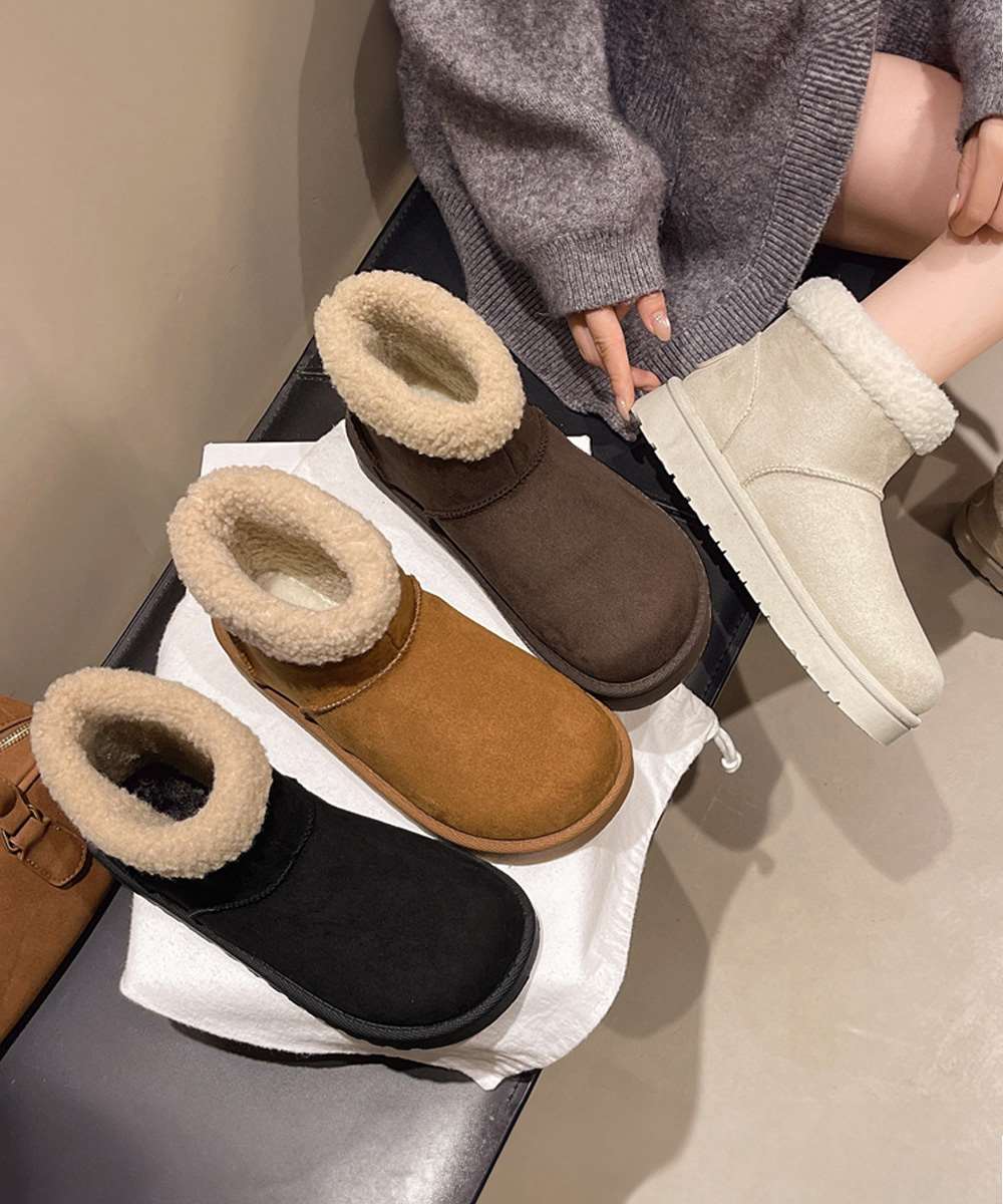 秋冬の定番靴、シンプルなデザインでどんな服にも合わせやすい無地のムートンブーツ。