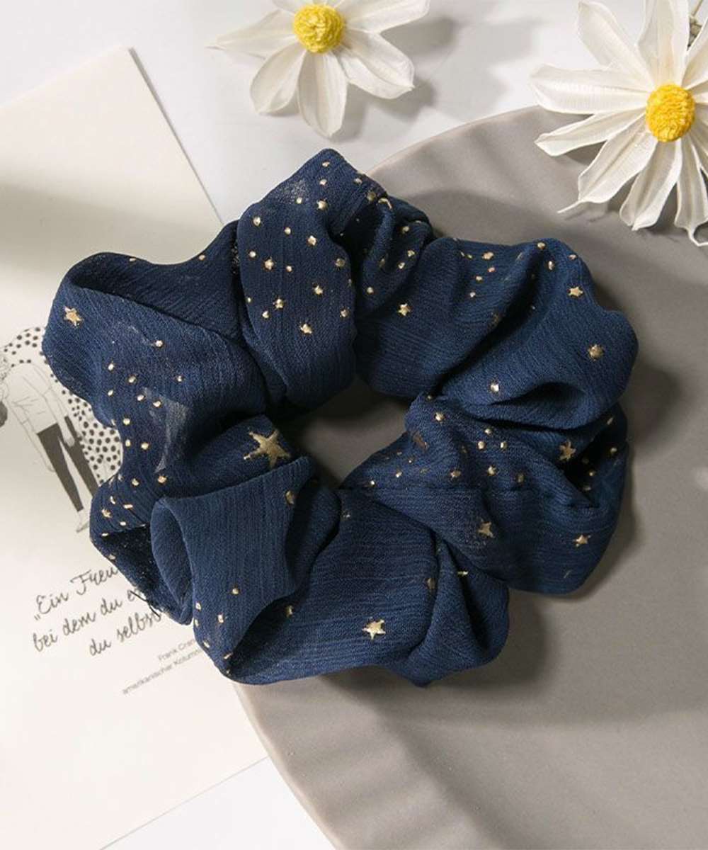 夜空のようなきらめきを散りばめた星柄シュシュ。