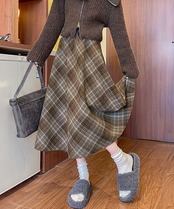 落ち着いた配色のチェック柄が、秋冬コーデにぴったり。