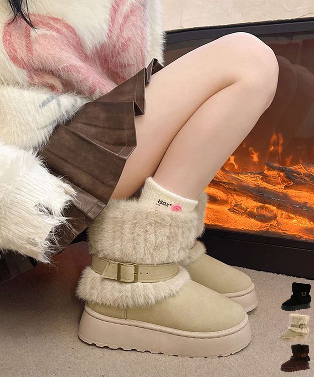 厚底 ムートン ブーツ ベルト付き 裏起毛