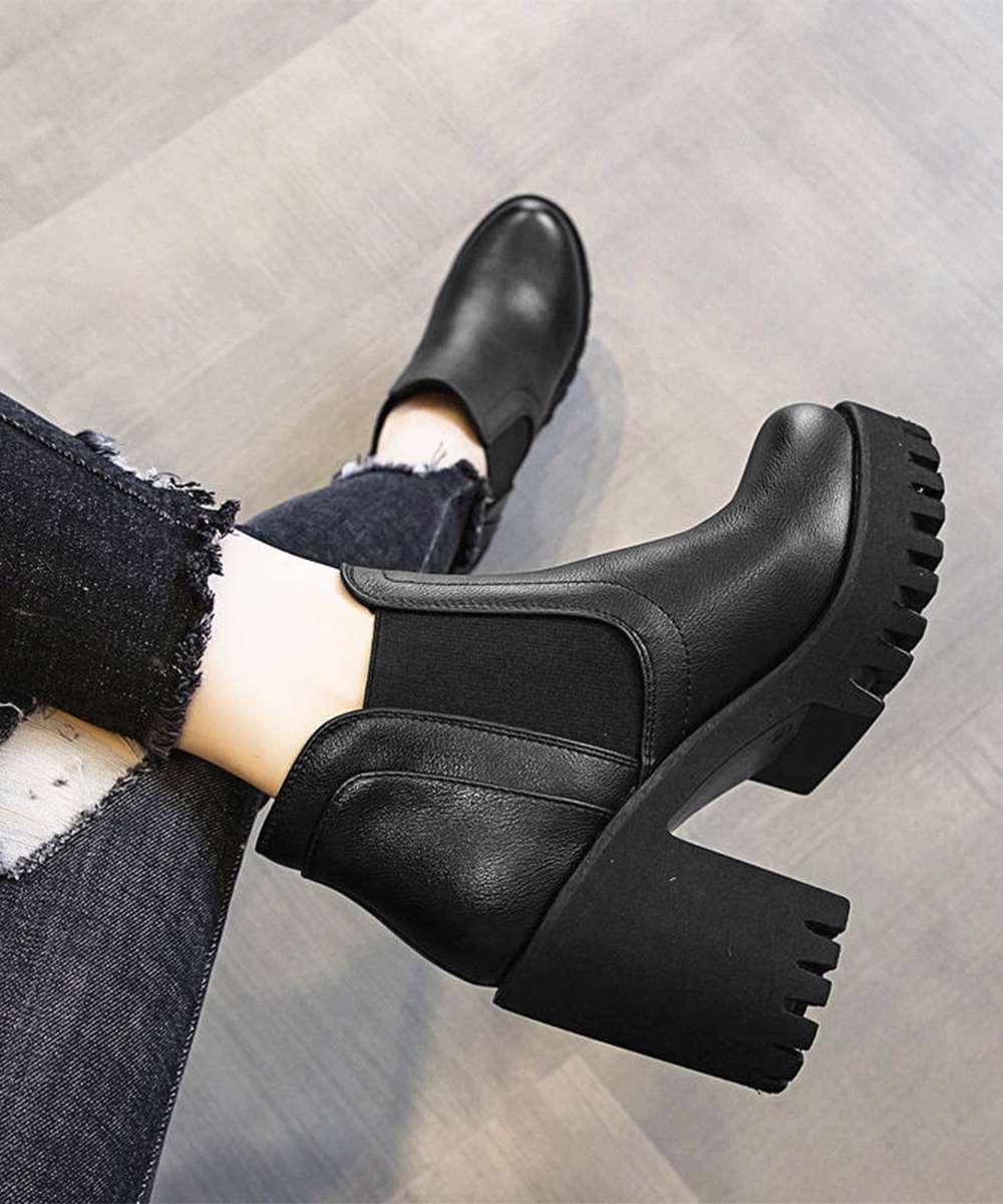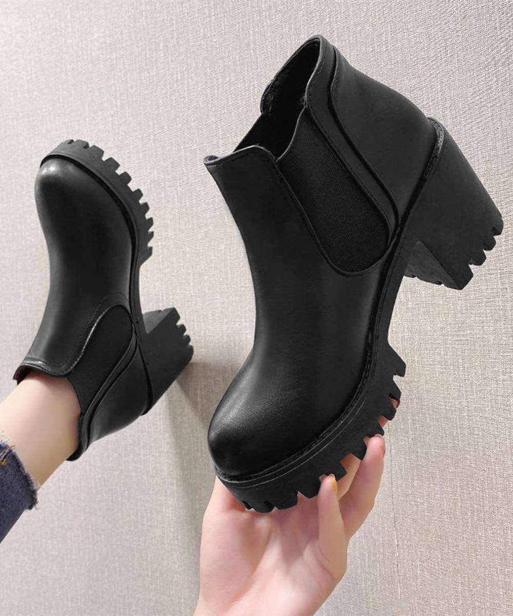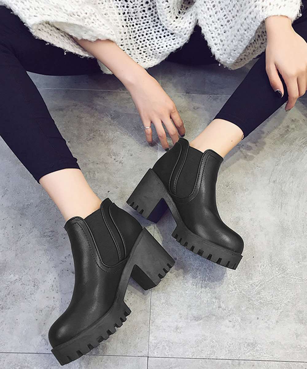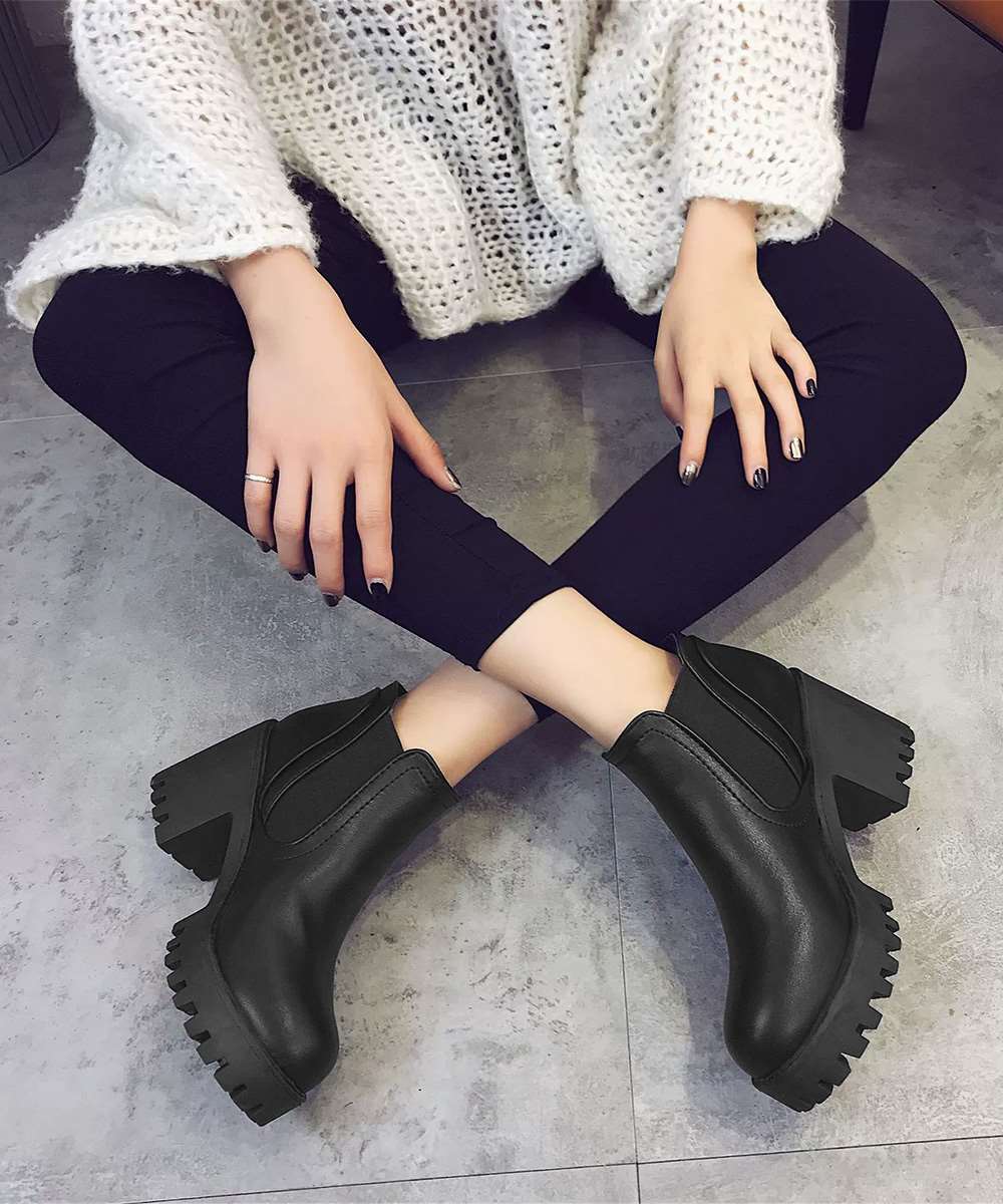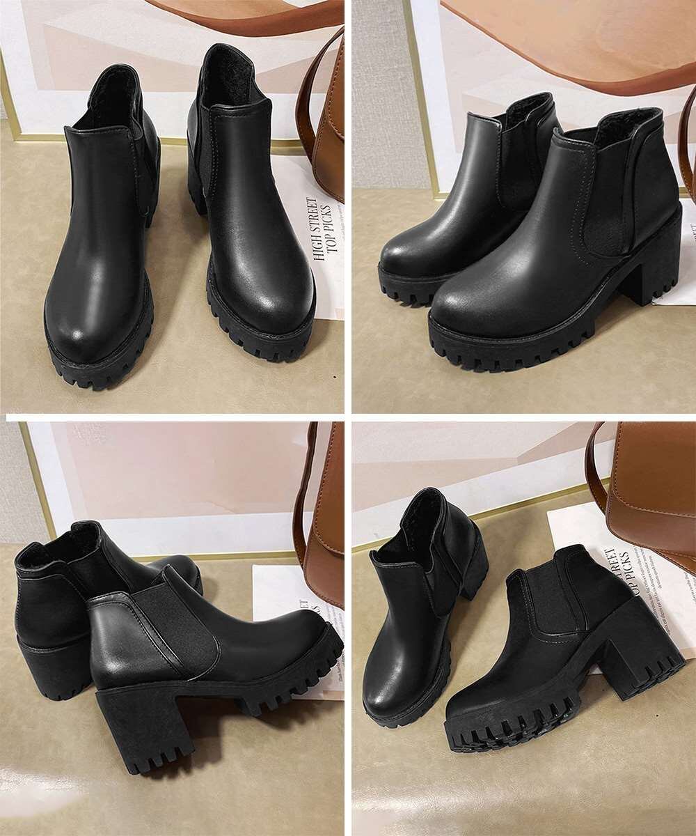 キーワード:靴おしゃれ大人 痛くない厚底ブーツ 太ヒール ブーツ黒