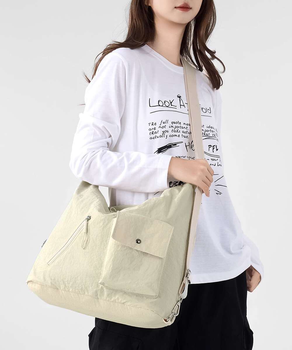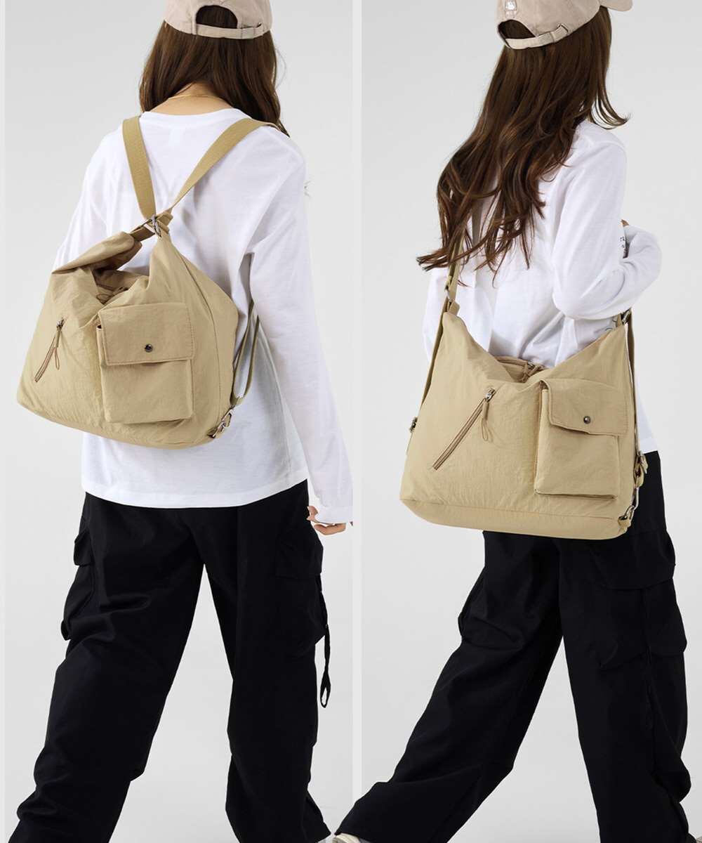 カジュアルに馴染み、持ち方の自由度が高い大容量バッグ。