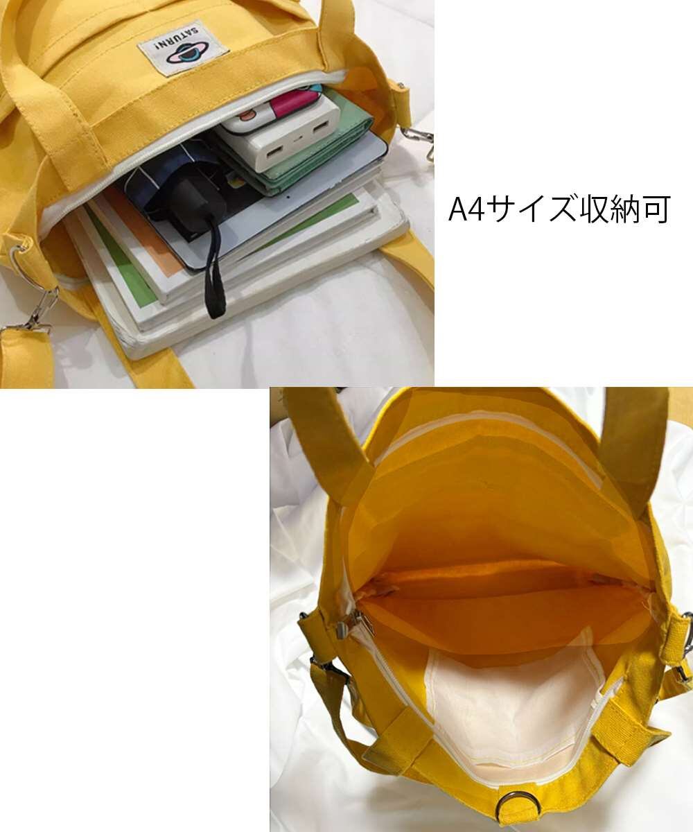 軽量ながらしっかりした生地感で、A4サイズもすっぽり収納可能。