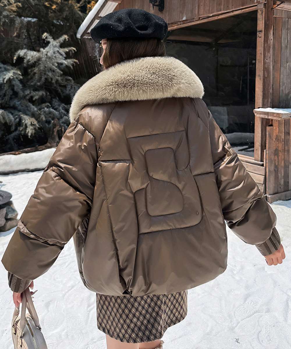 ボリュームのあるファーが顔周りを華やかに見せ、寒い季節も暖かく包み込む。