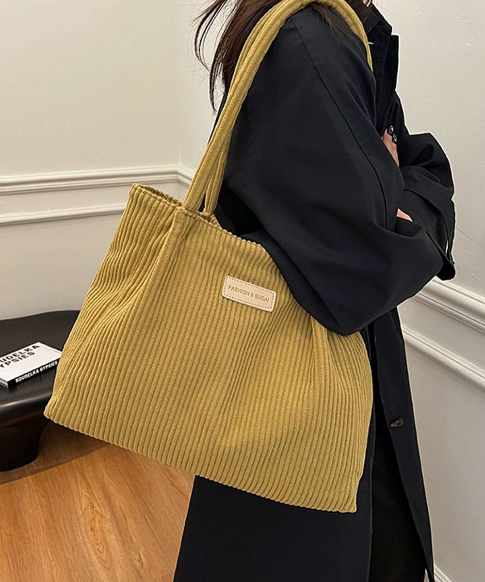 やわらかなコーデュロイ素材のトートバッグ。