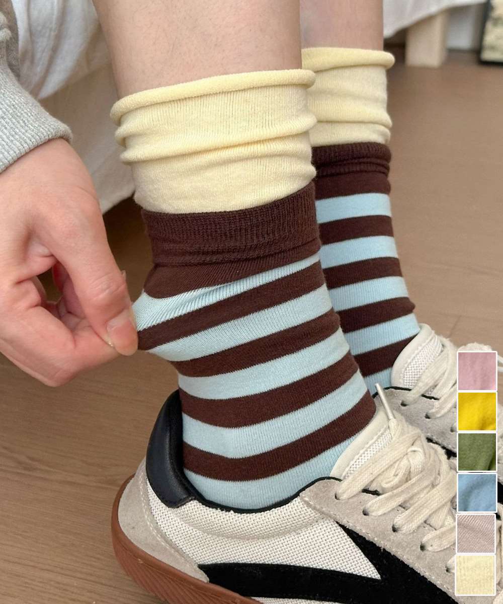 キーワード:トレンド靴下韓国風 バイカラーソックス ルーズソックス