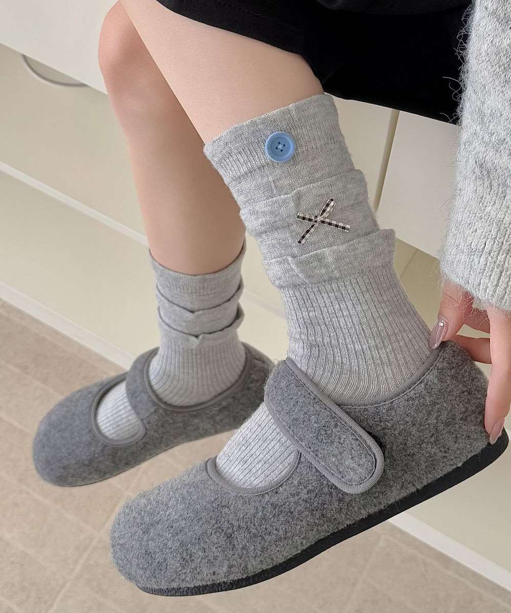 やわらかな肌ざわりで足元を包み込む、ナチュラルな抜け感のあるボタン付きリブソックス。