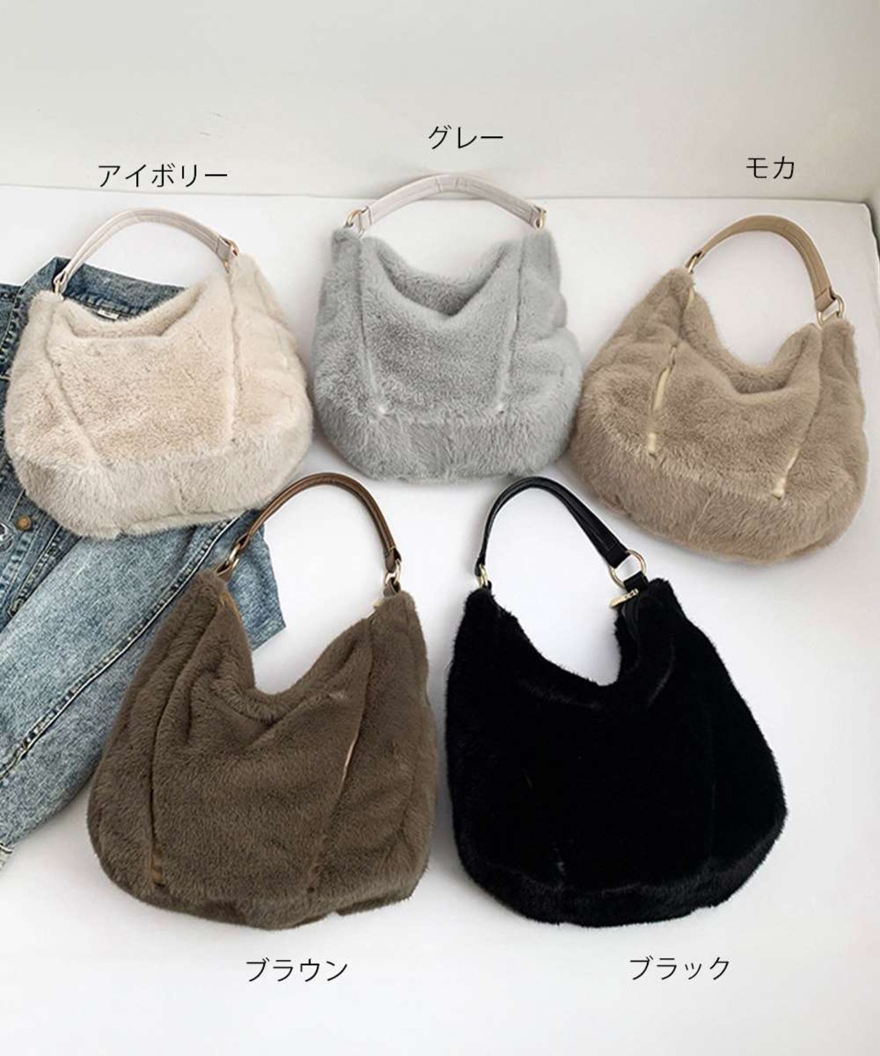 ふわふわのフェイクファーが存在感を放つトートバッグ。