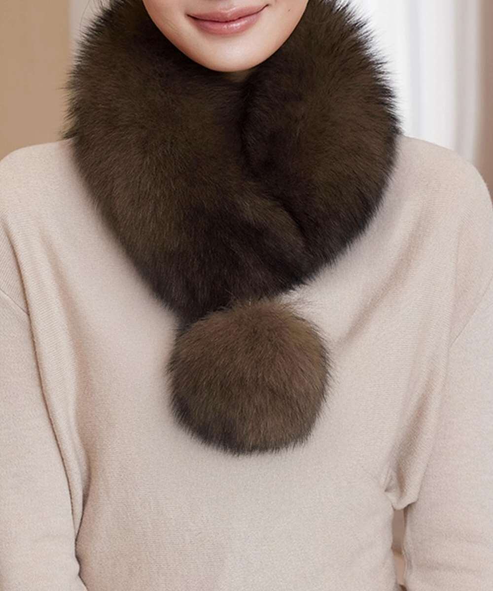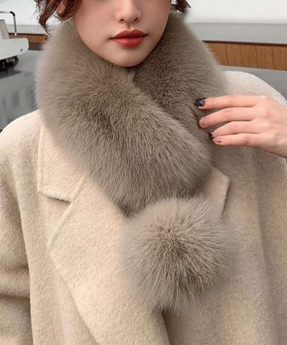 柔らかくボリュームのある毛並みが首元をしっかり包み込み、顔まわりに華やかさをプラス。