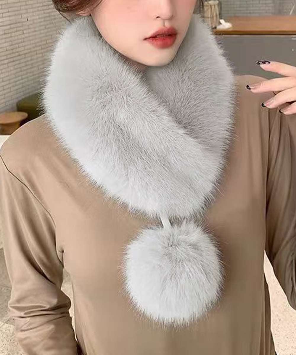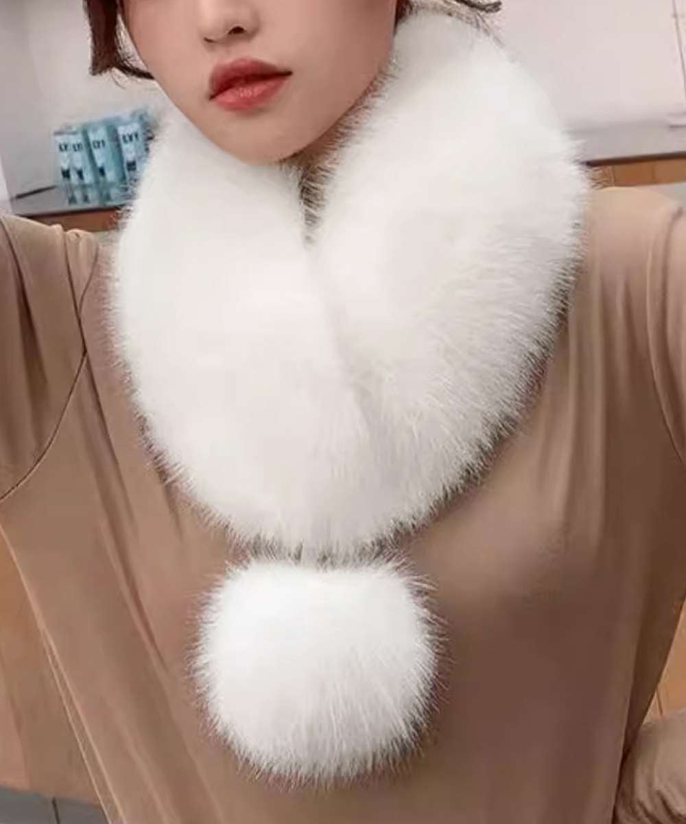 ポンポン付きで愛らしい印象を添えるレディライクなフェイクファーマフラー。