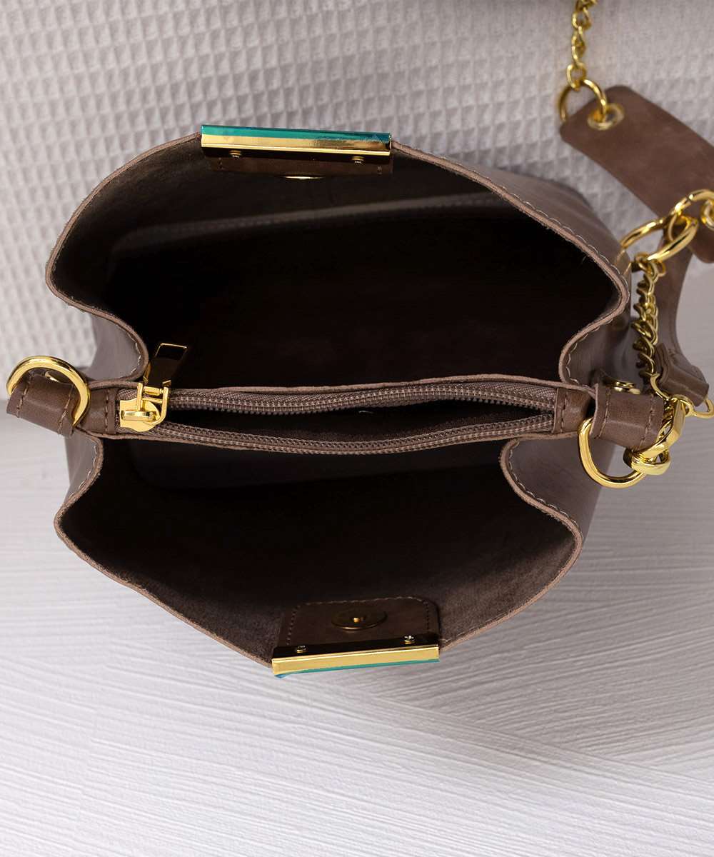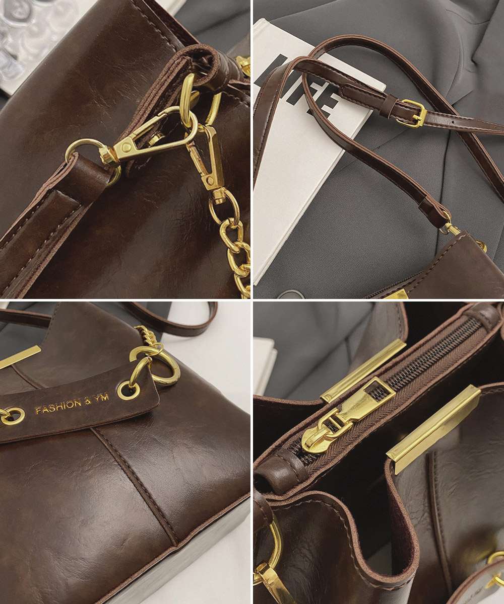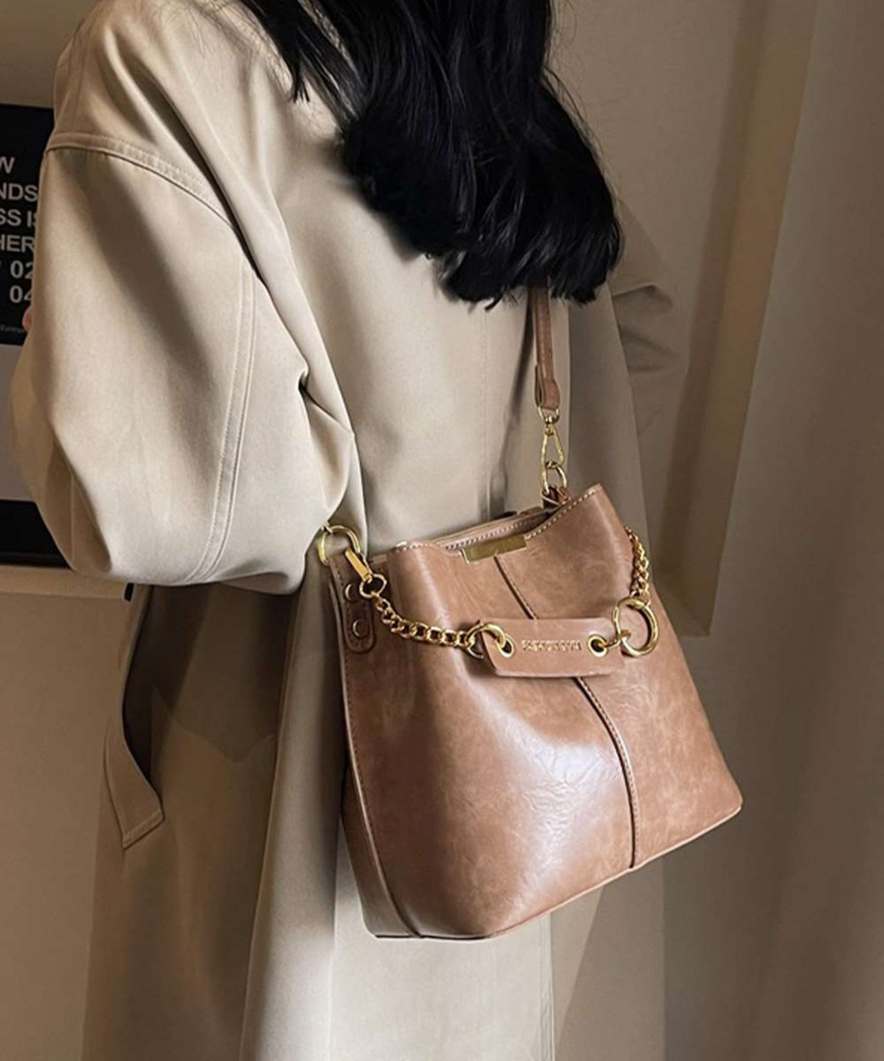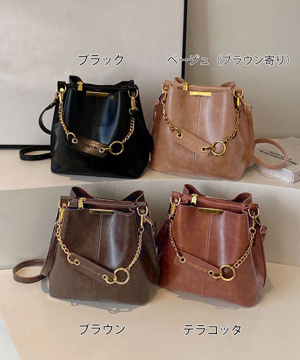 ヴィンテージ感漂う韓国風デザインのチェーン付きバケットバッグ。