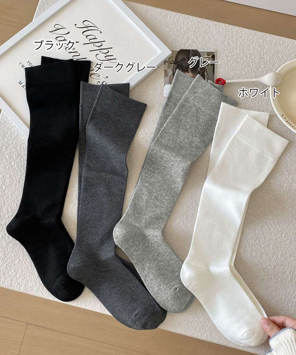 キーワード:ロング靴下 韓国風 膝下ソックス 学生 ガーリー靴下 白黒