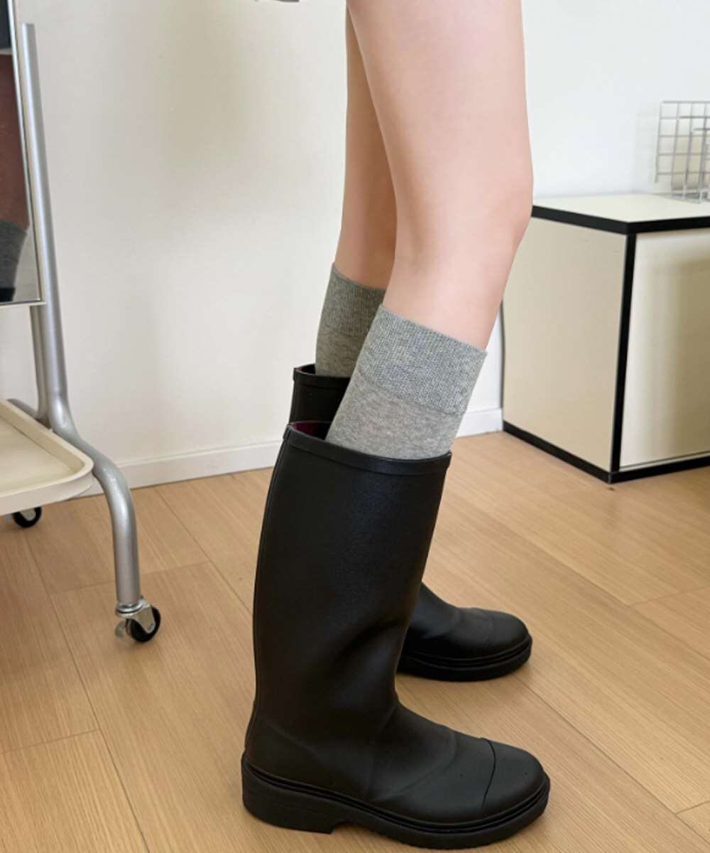 足元をすっきり見せてくれる、柔らかな素材のハイソックス。