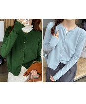 キーワード:丸首ニット 前開き オフィスカジュアル 通勤コーデ