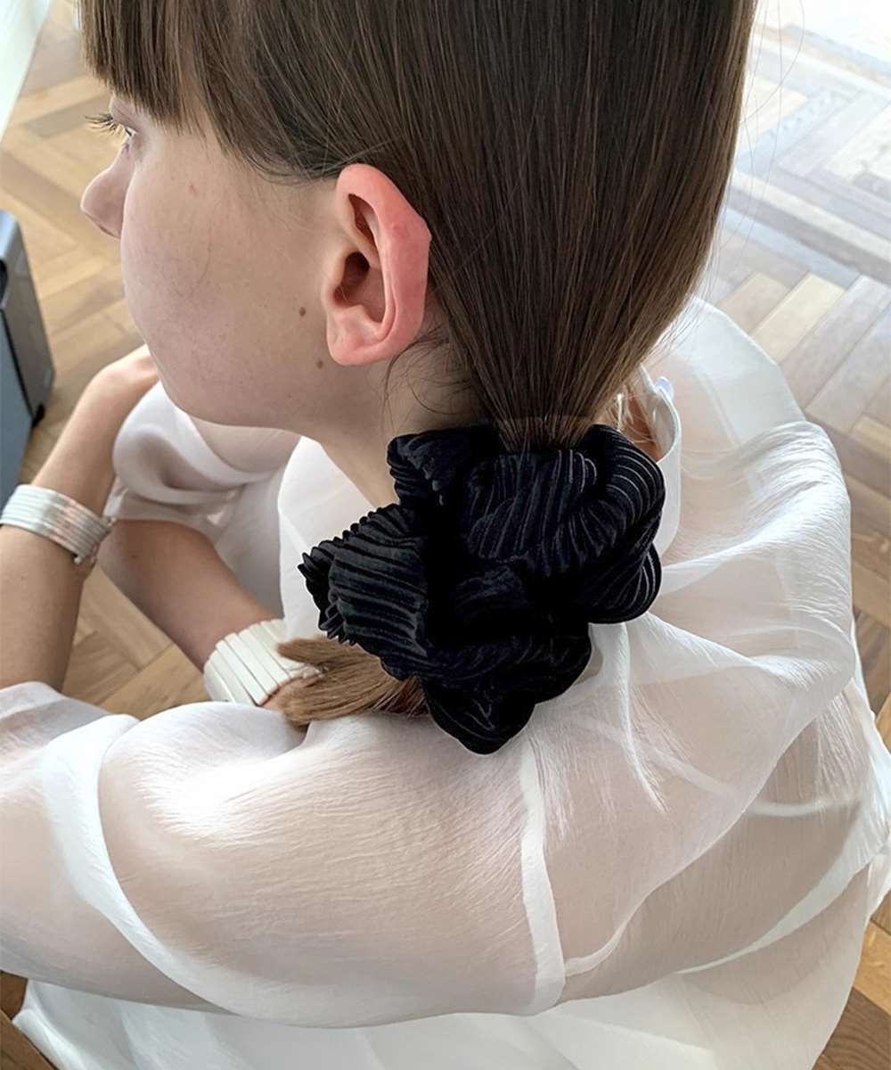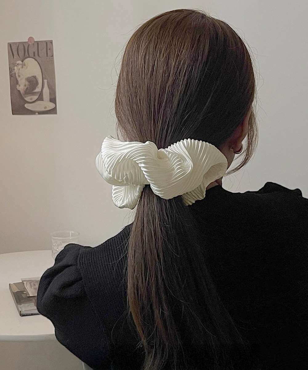 光沢のある生地で、結ぶだけでヘアアレンジがぐっと華やかに。