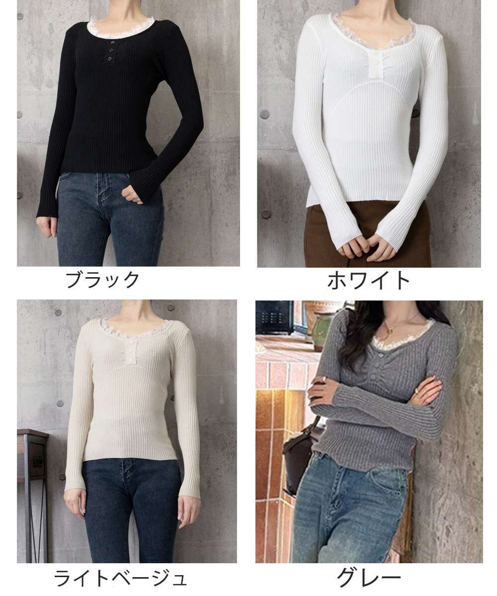 繊細なレースネックが女性らしいフェミニンな雰囲気をプラス。