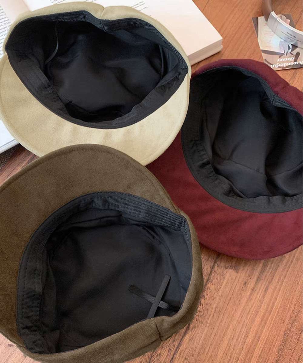 起毛感のあるスエード調素材が秋冬らしい、上品なキャスケット。
