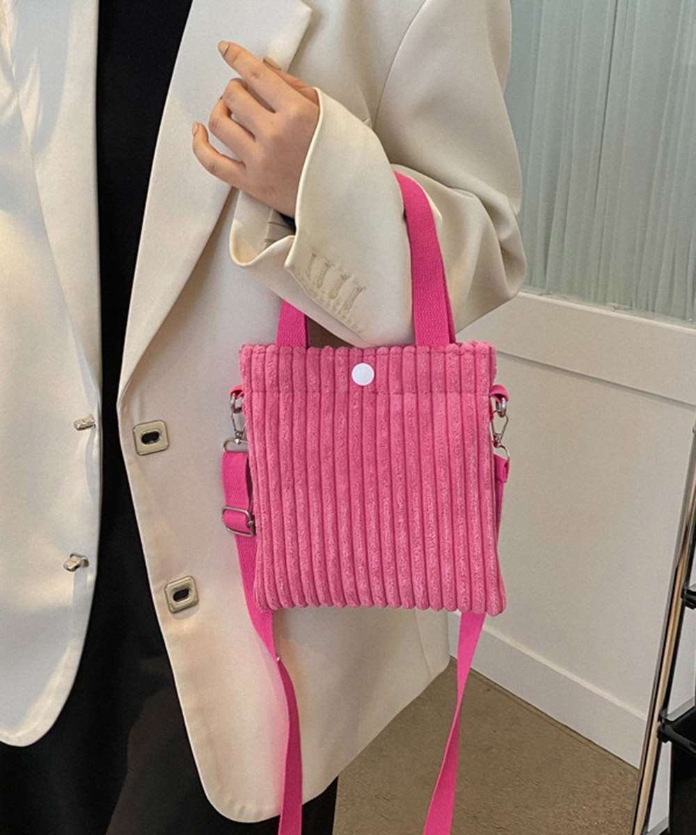 季節感のあるコーデュロイ素材を使用したミニショルダーバッグ。