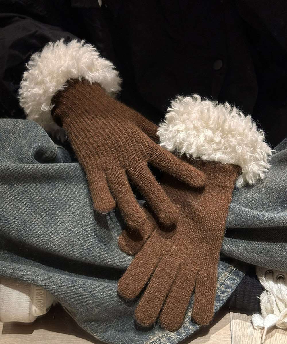 手首部分にもこもこのボアをあしらい、防風性と保温性を高めながら、見た目の可愛さと実用性を両立。