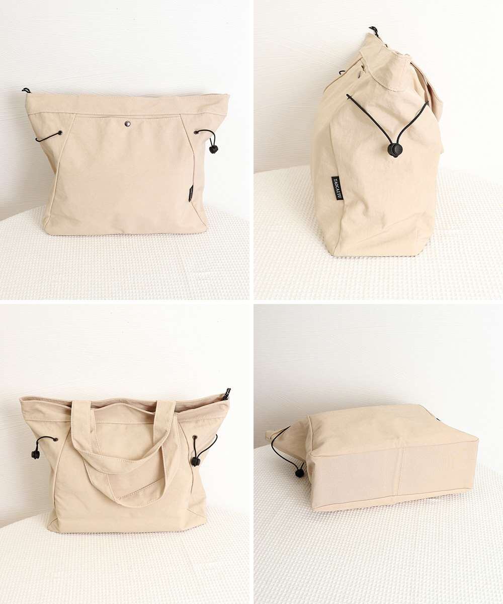両サイドのドローストリングデザインがさりげないアクセントに。