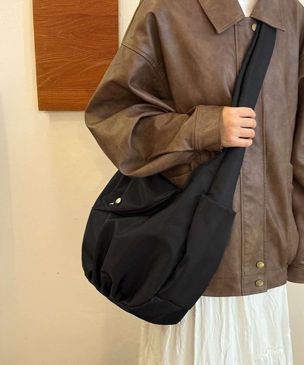 通勤や通学にぴったりで、たっぷり収納できるショルダーバッグ。