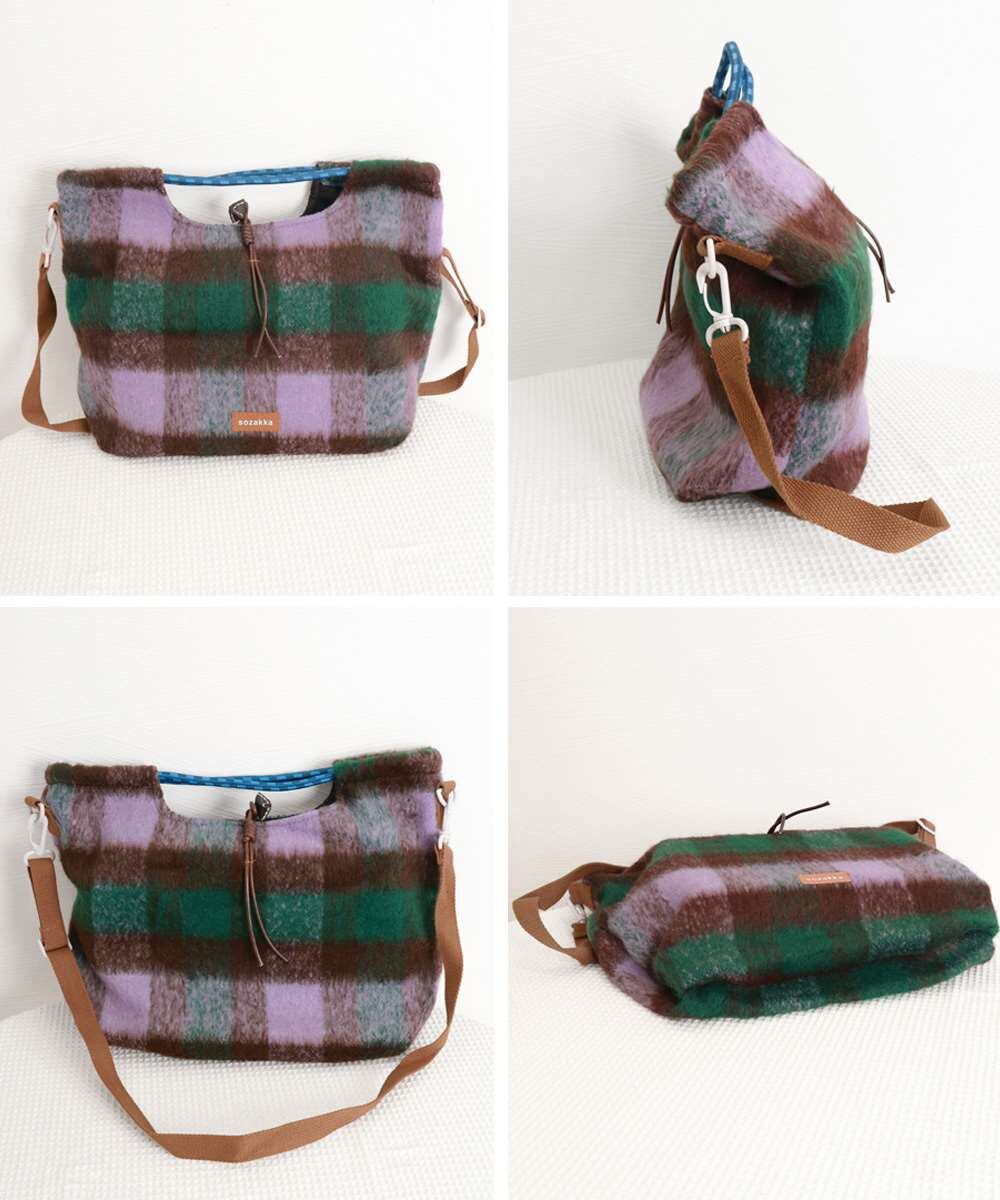 チェック柄デザインがコーデに映える、ウール調素材を使用した秋冬新作のショルダーバッグ。