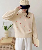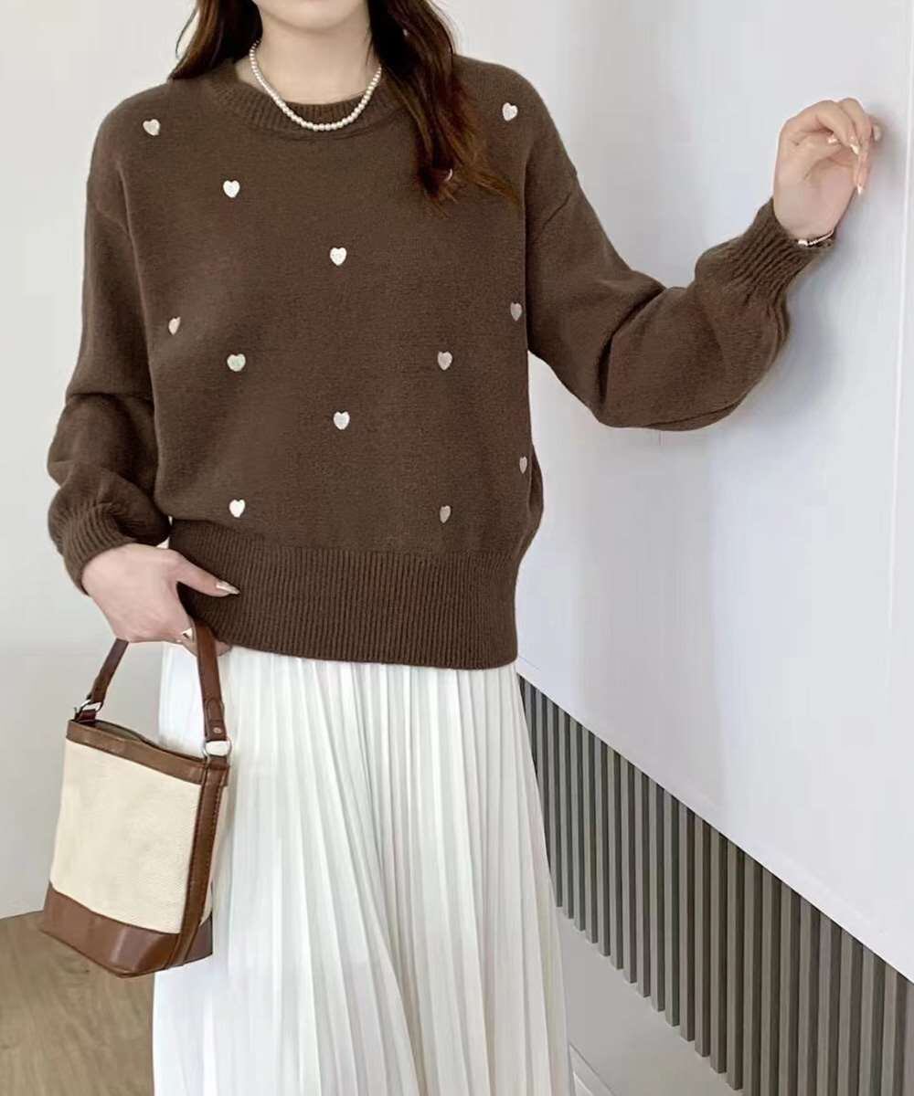 トレンドライクなハート柄がポップで可愛い印象のニットプルオーバー。