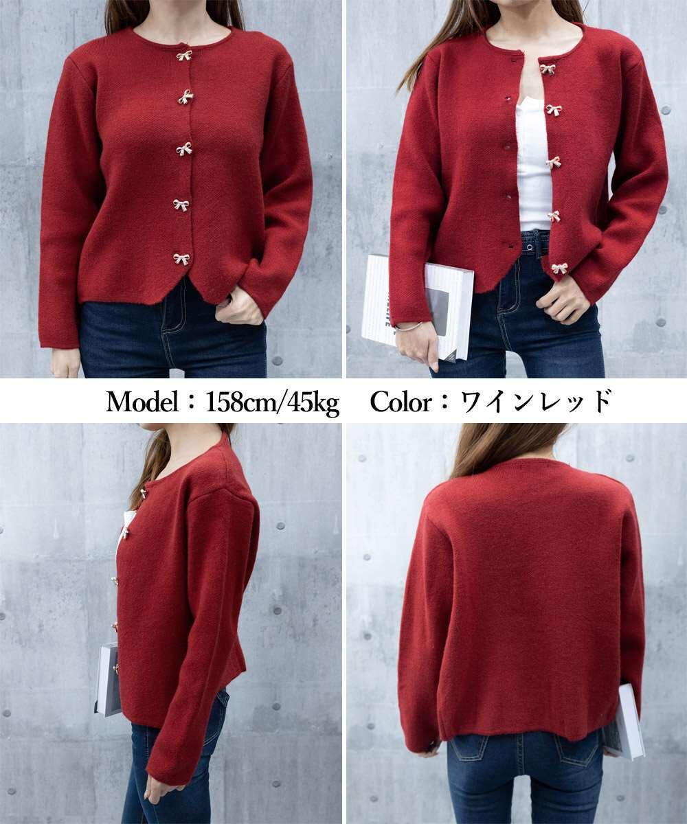 小さなリボン調のゴールドボタンが上品さを添えるポイント。