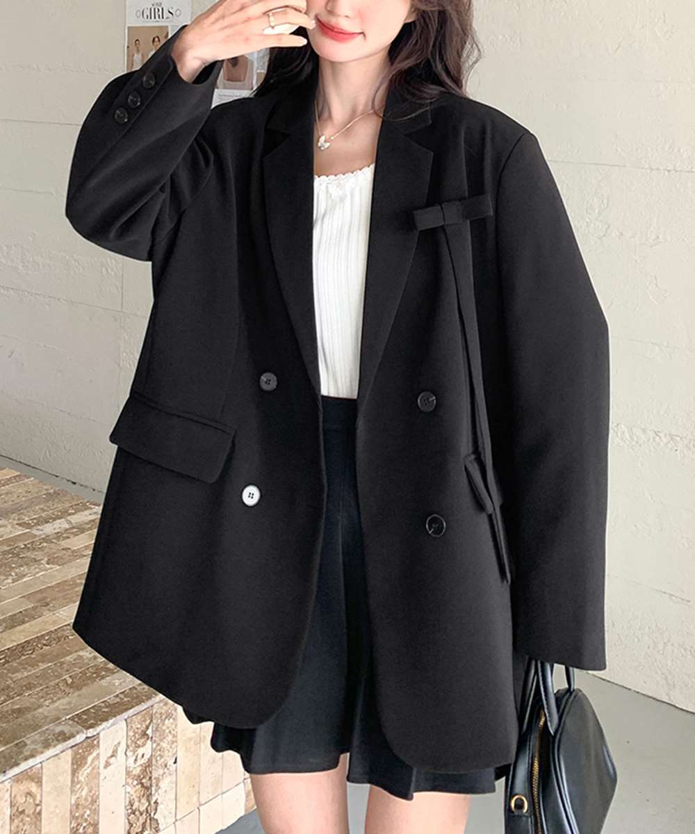 胸元にあしらった上品なリボンディテールが、シンプルながらも女性らしさを引き立てるポイント。