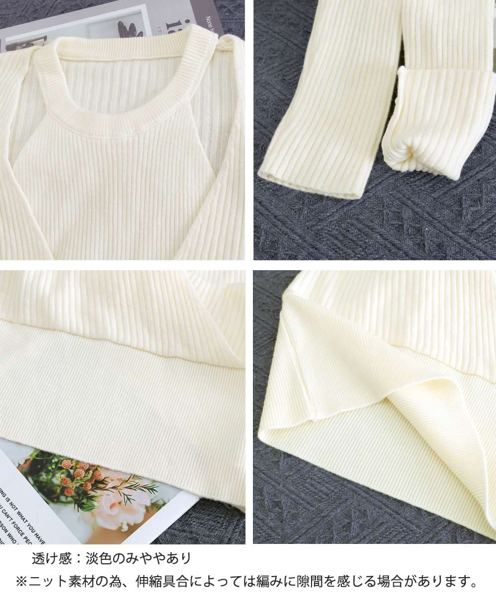 ニット トップス 長袖 レイヤード風