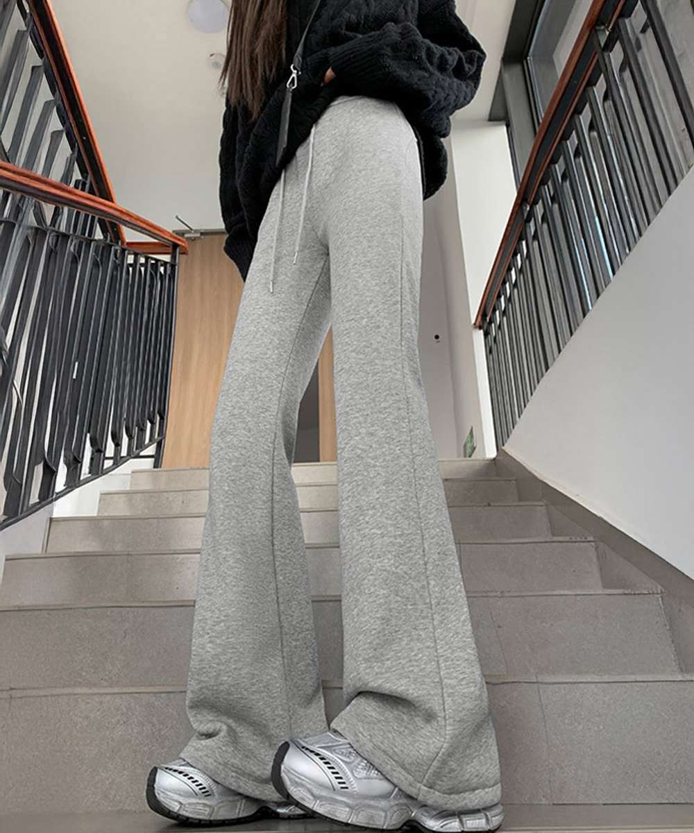 ウエストゴムで楽ちん&ハイウエスト仕様で脚長見えするスウェットパンツ。