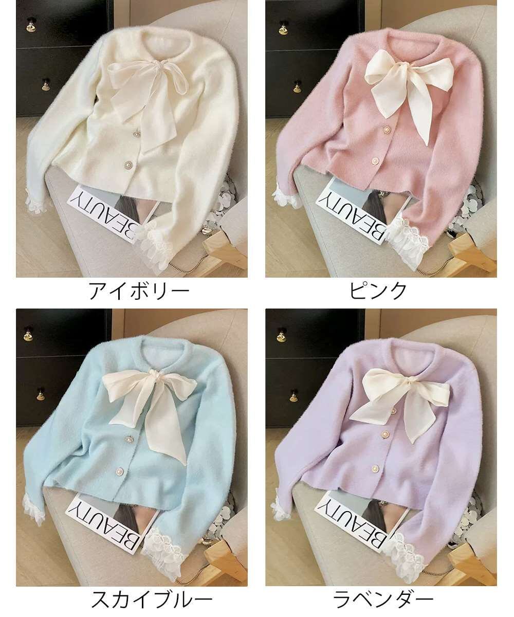 大きめリボンタイが目を惹くフェミニンニット。