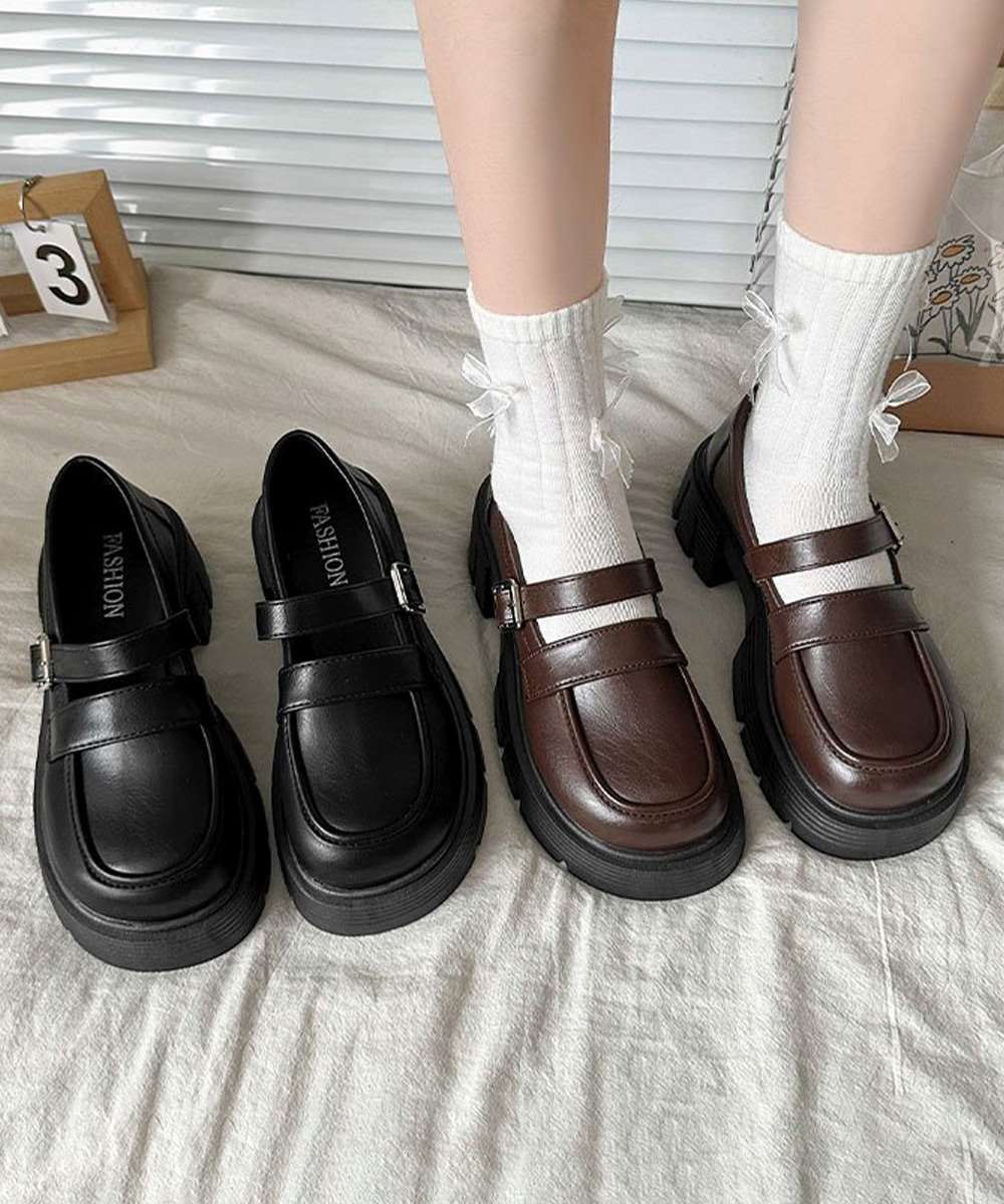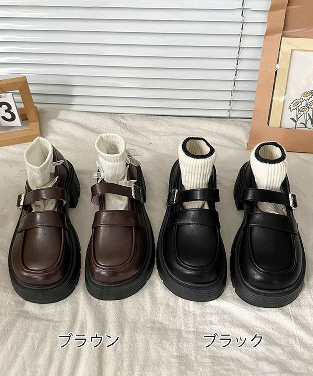 ダブルベルト 厚底 ローファー 韓国風 美脚 靴
