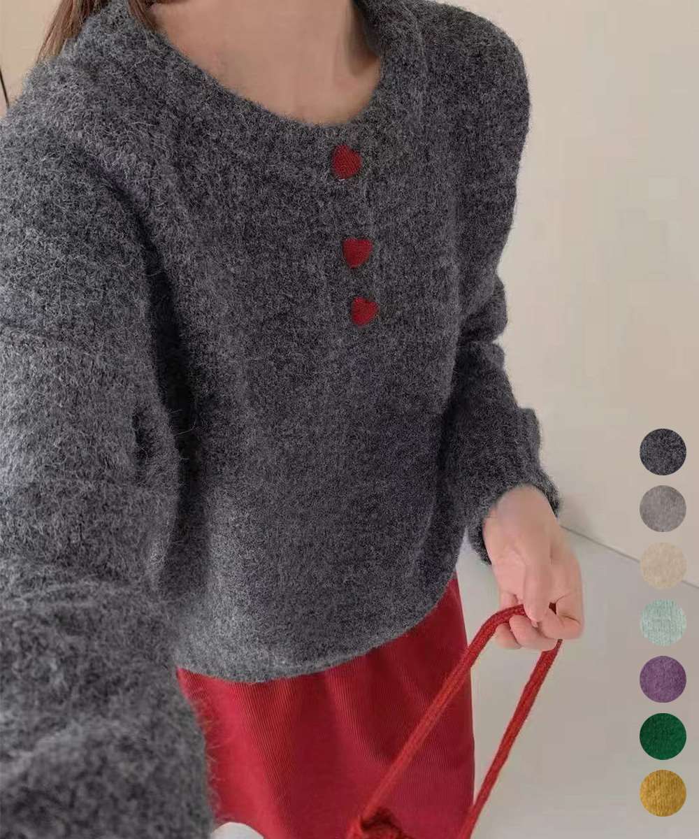 胸元には開閉できる赤いハートボタンをあしらい、ほんのりガーリーなアクセントに。