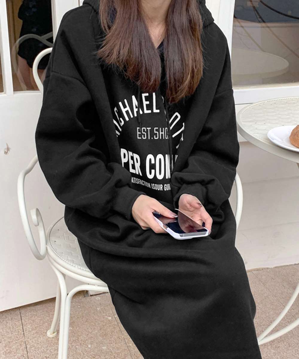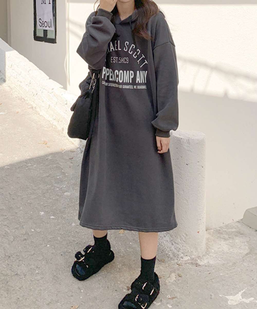 フロントにロゴプリントが入ったオーバーサイズのスウェットワンピース。