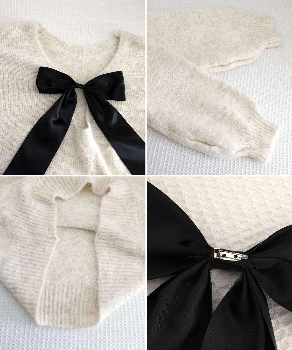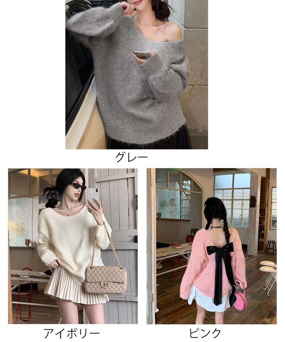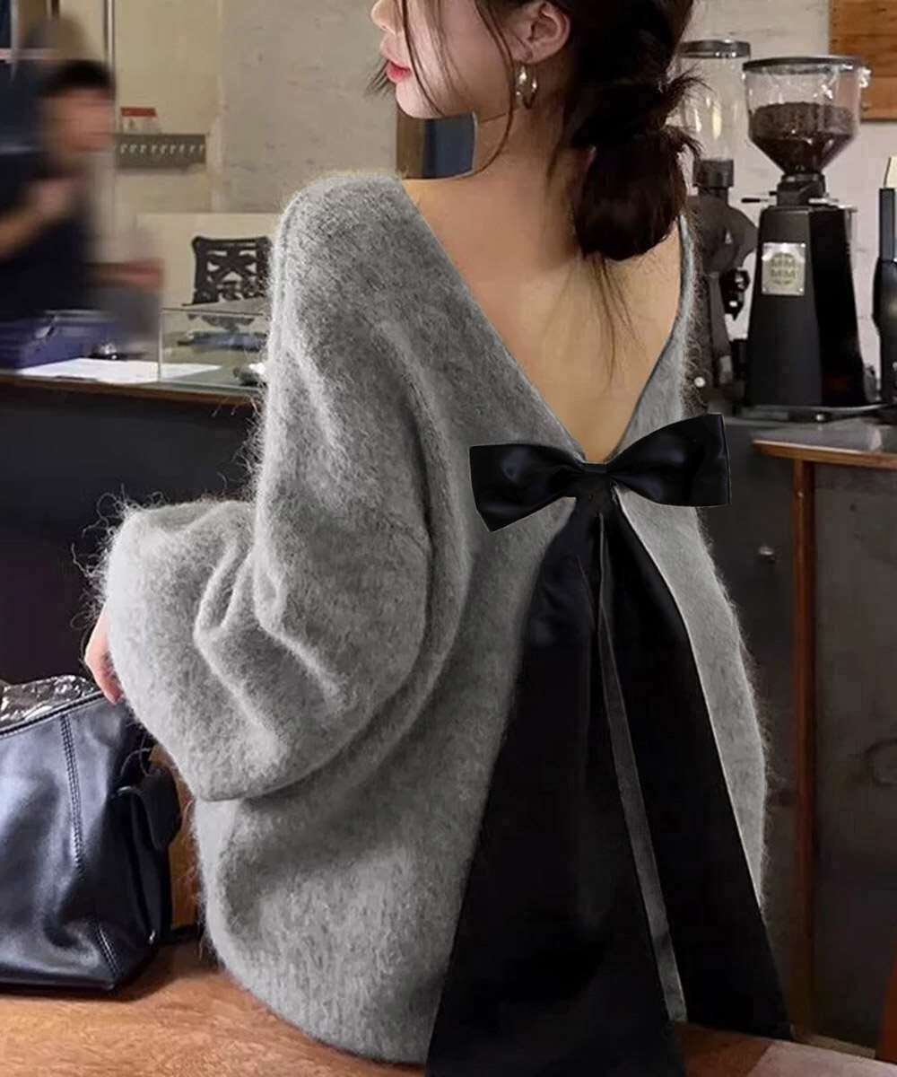 バックオープン リボン ニット トップス 韓国風