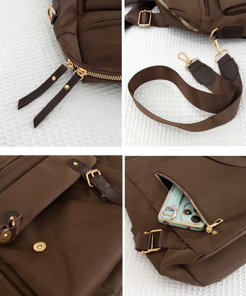 フロント・サイド・内ポケットなど収納が豊富で、通勤・通学・旅行など荷物が多いシーンでも大活躍。