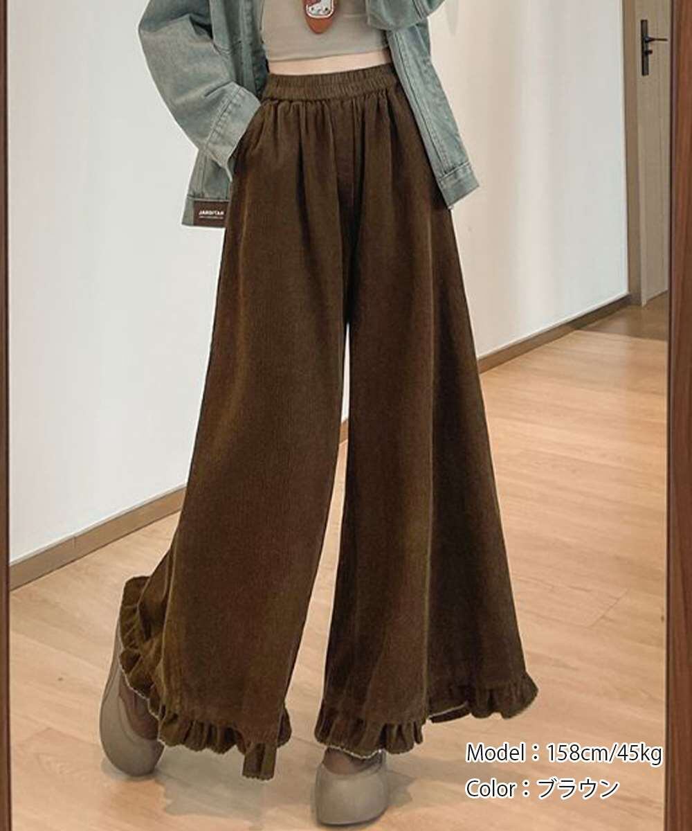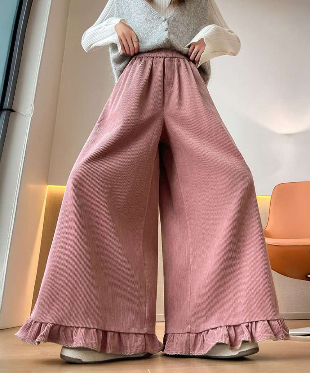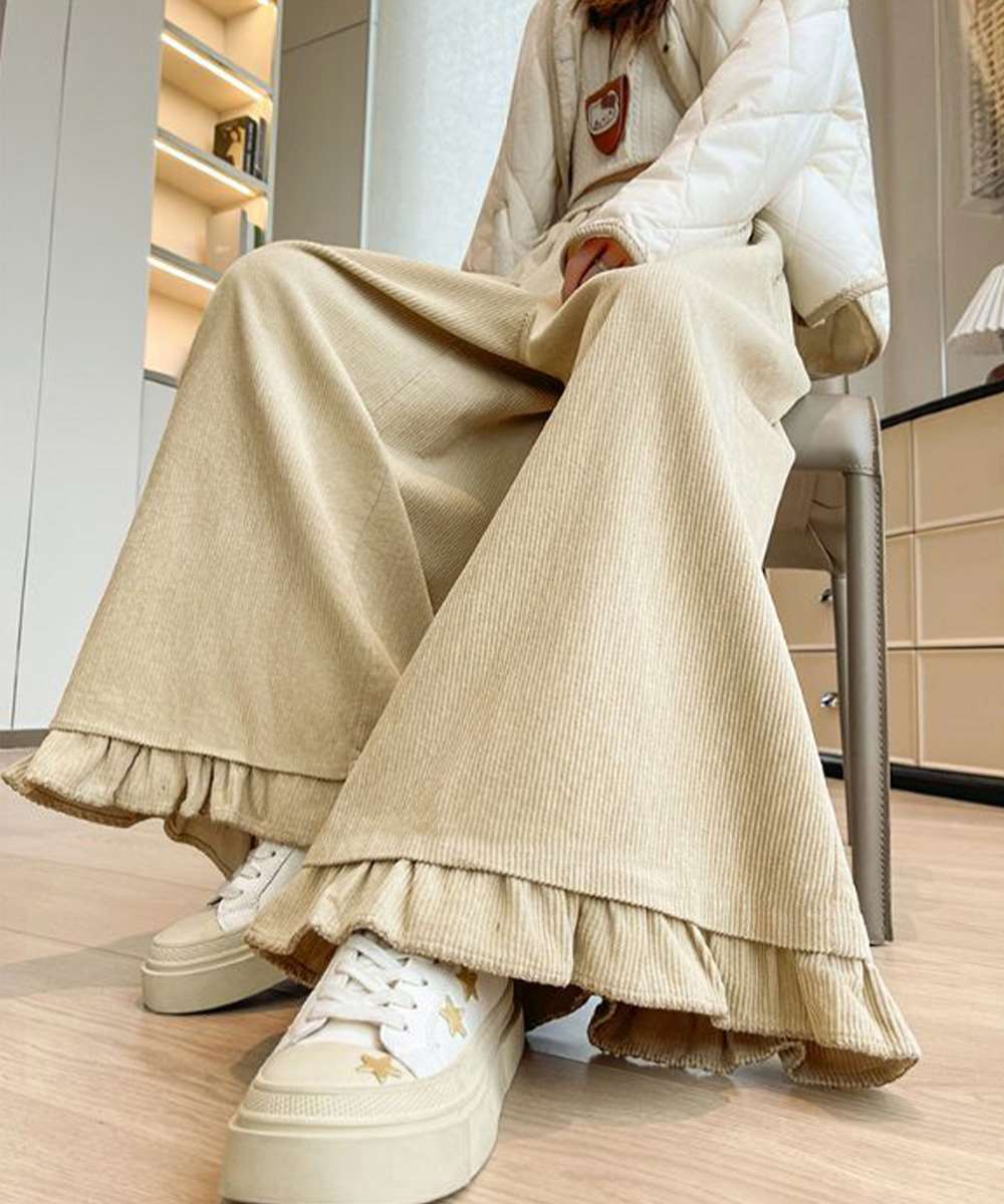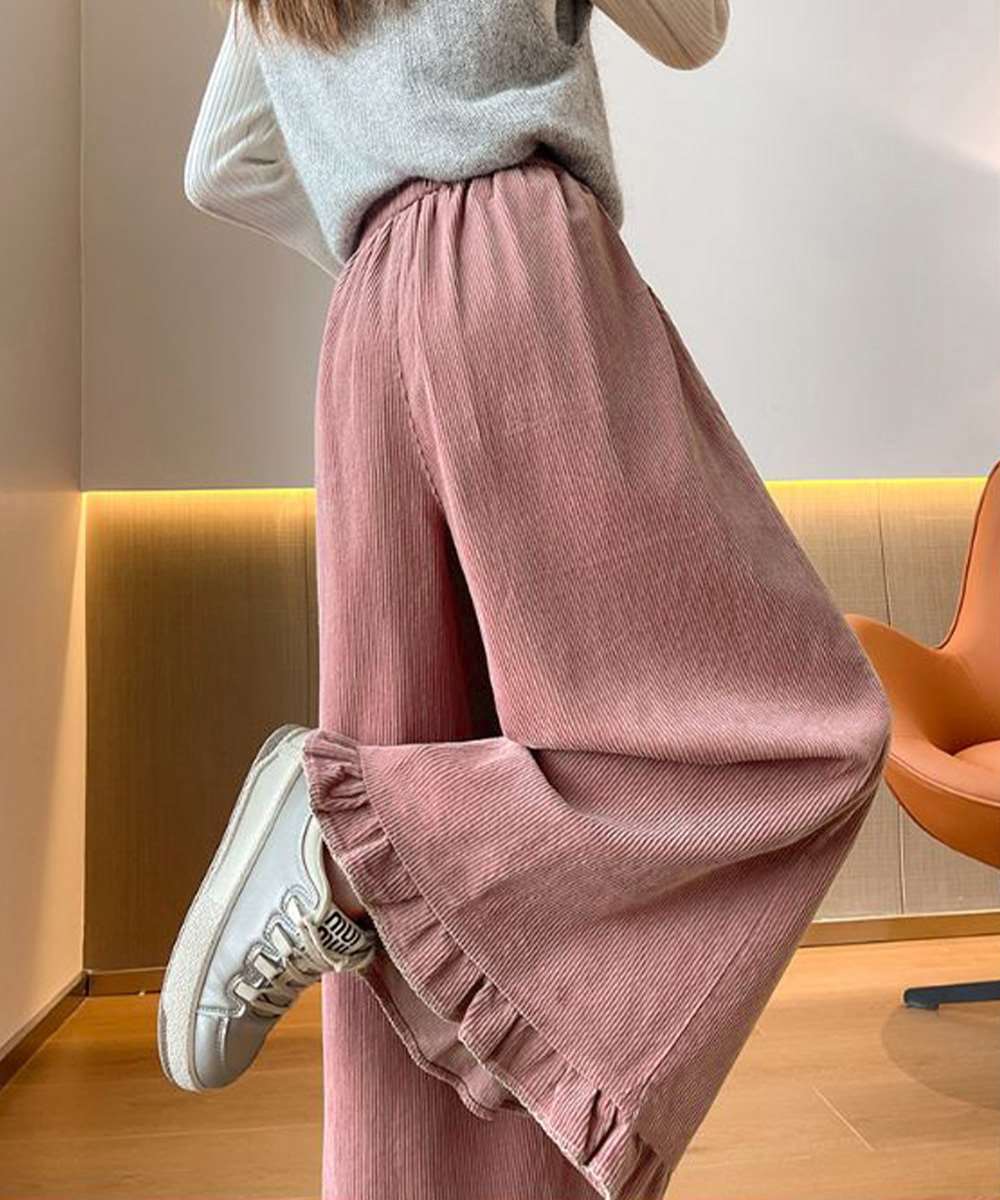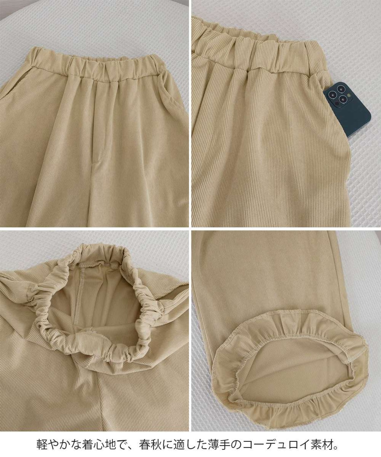 表情のある薄手コーデュロイ素材で、春秋のデイリーに活躍するワイドパンツ。