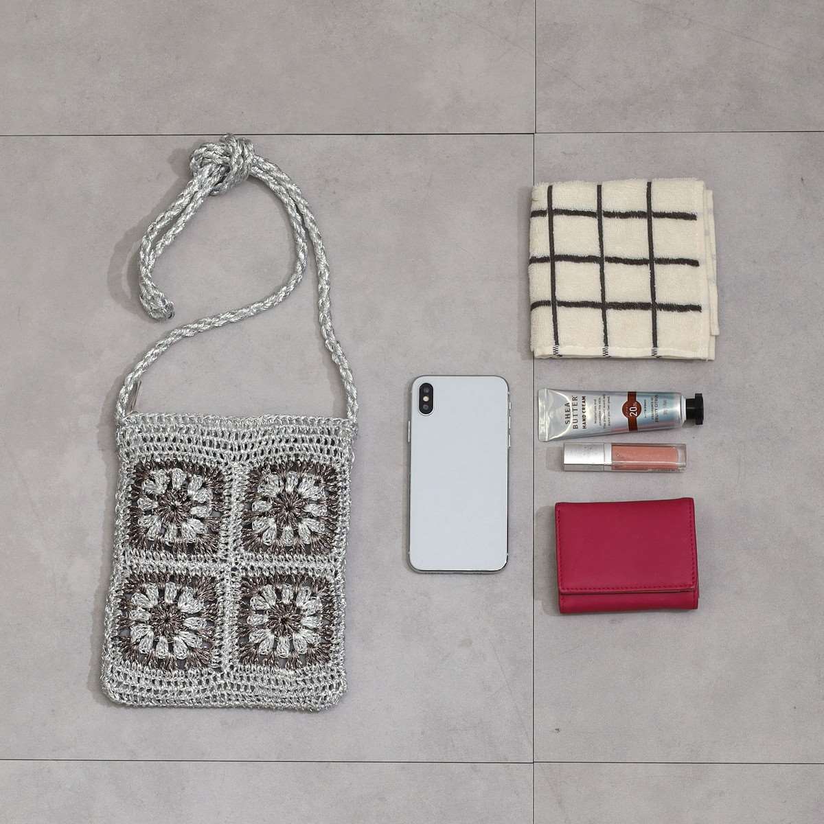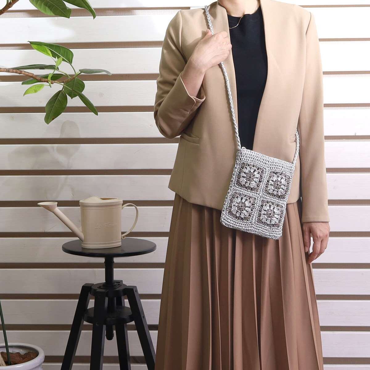 COOCO ラメ糸 クロシェ編み スクエア ミニ ショルダー