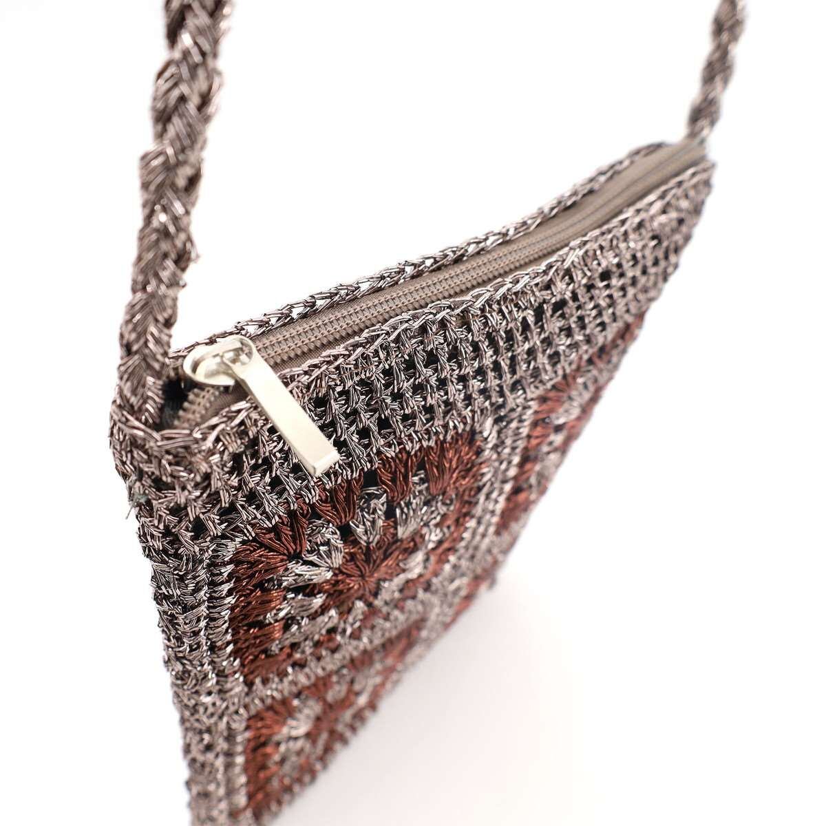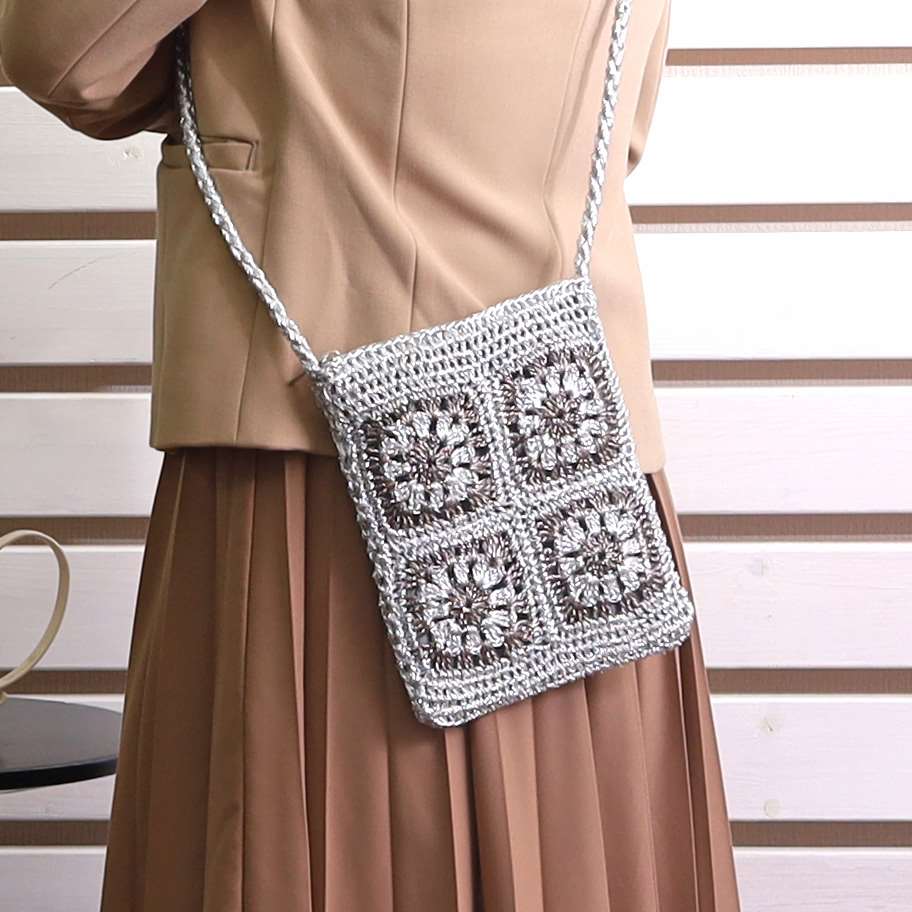 メタリックヤーンでクロシェ編みがかわいいミニショルダーバッグ