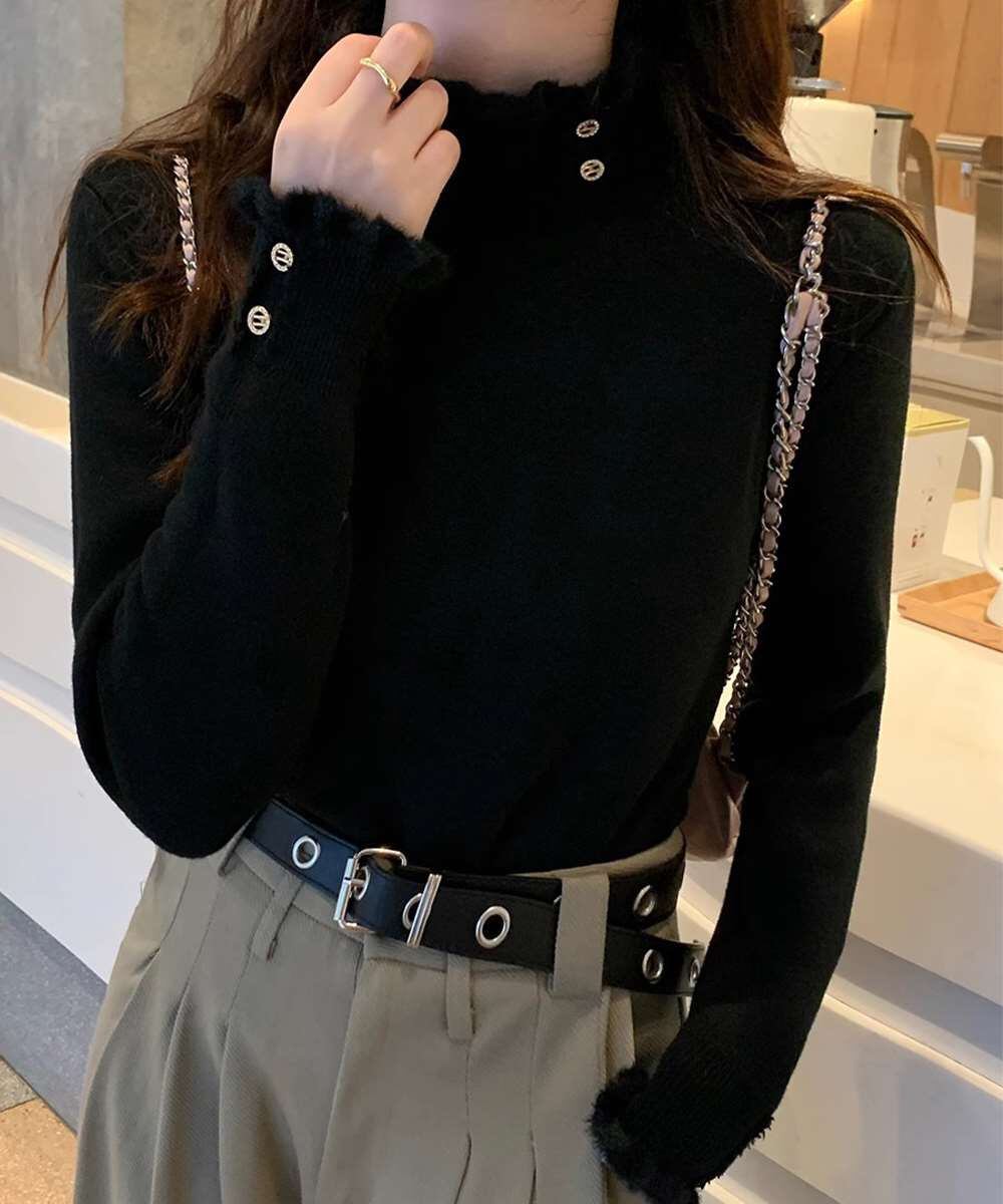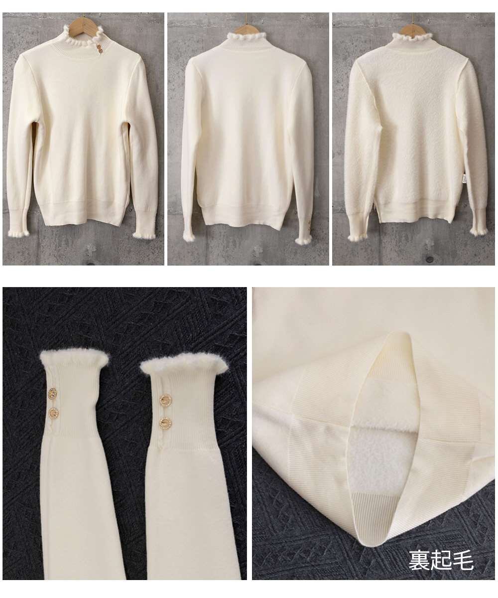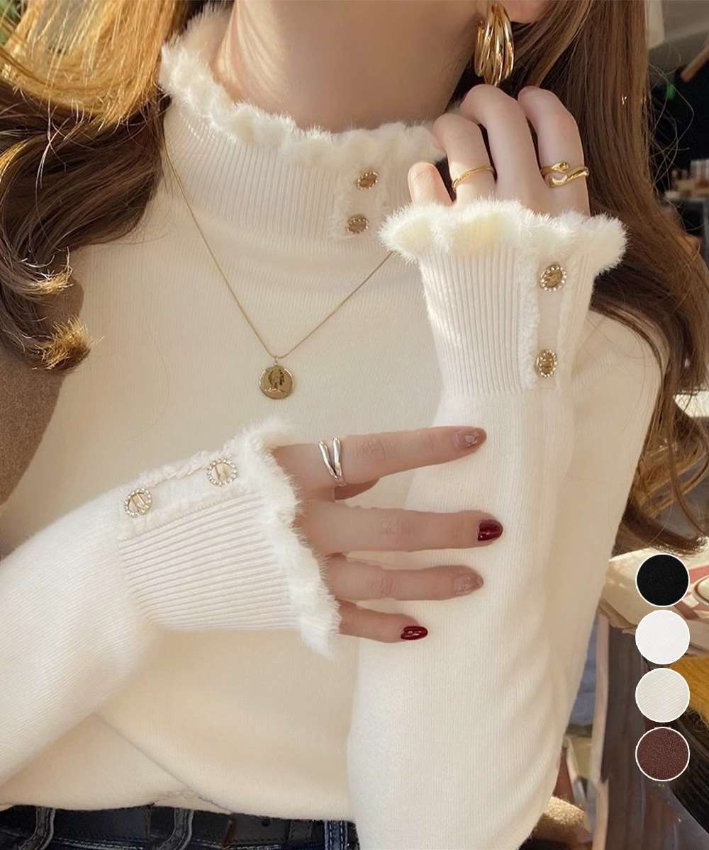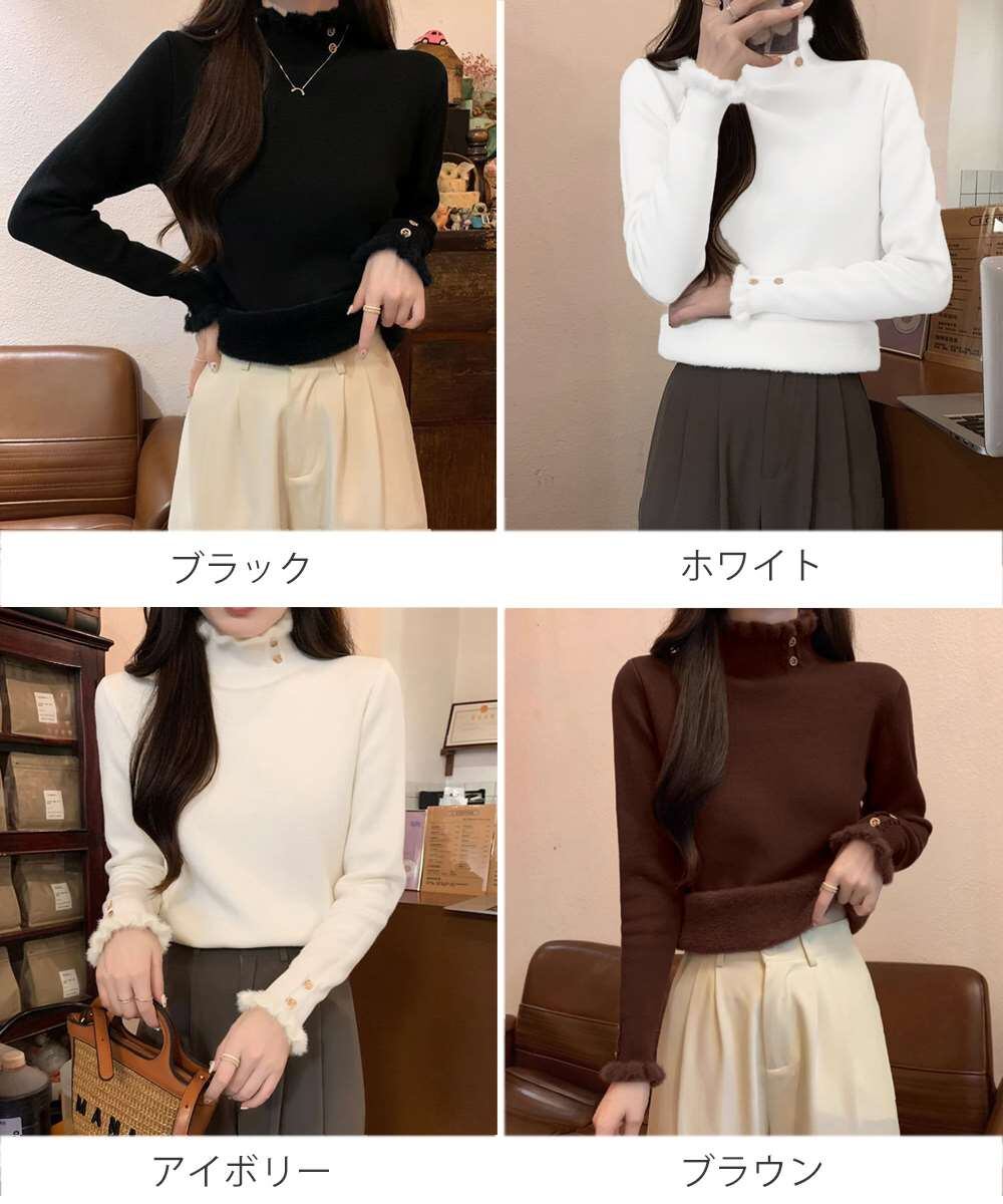 裏起毛 ハイネック ニット トップス フリル襟