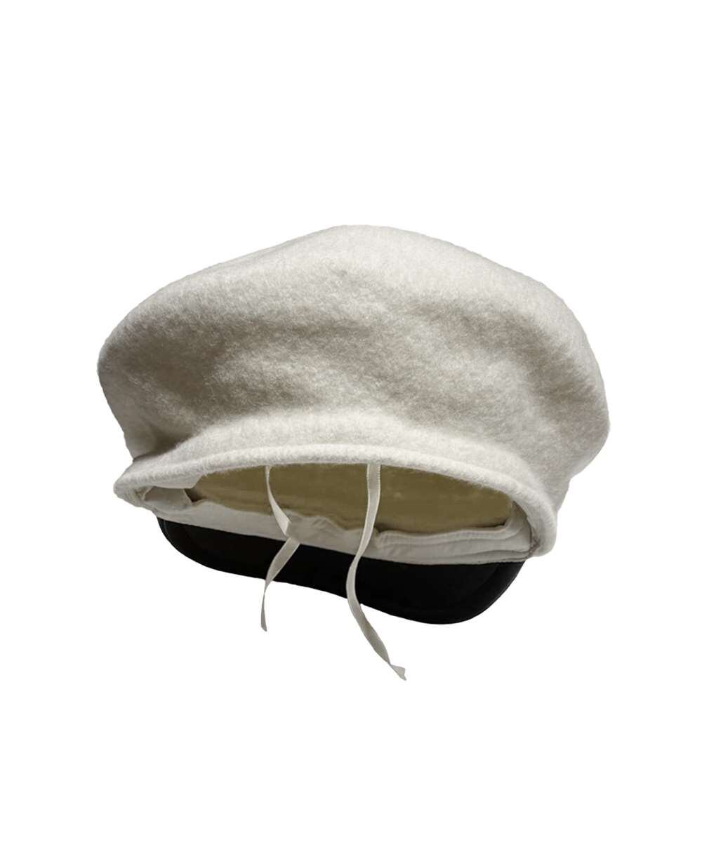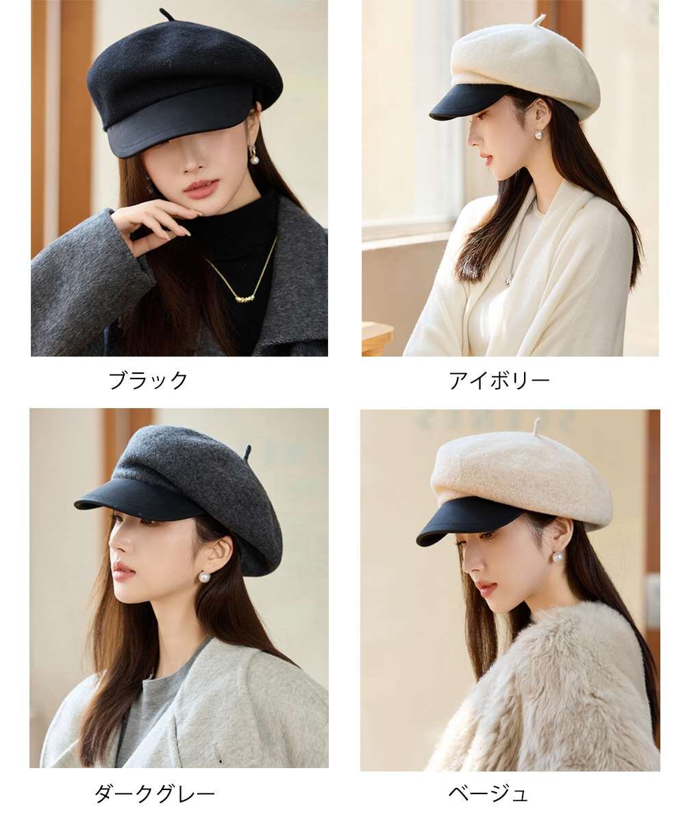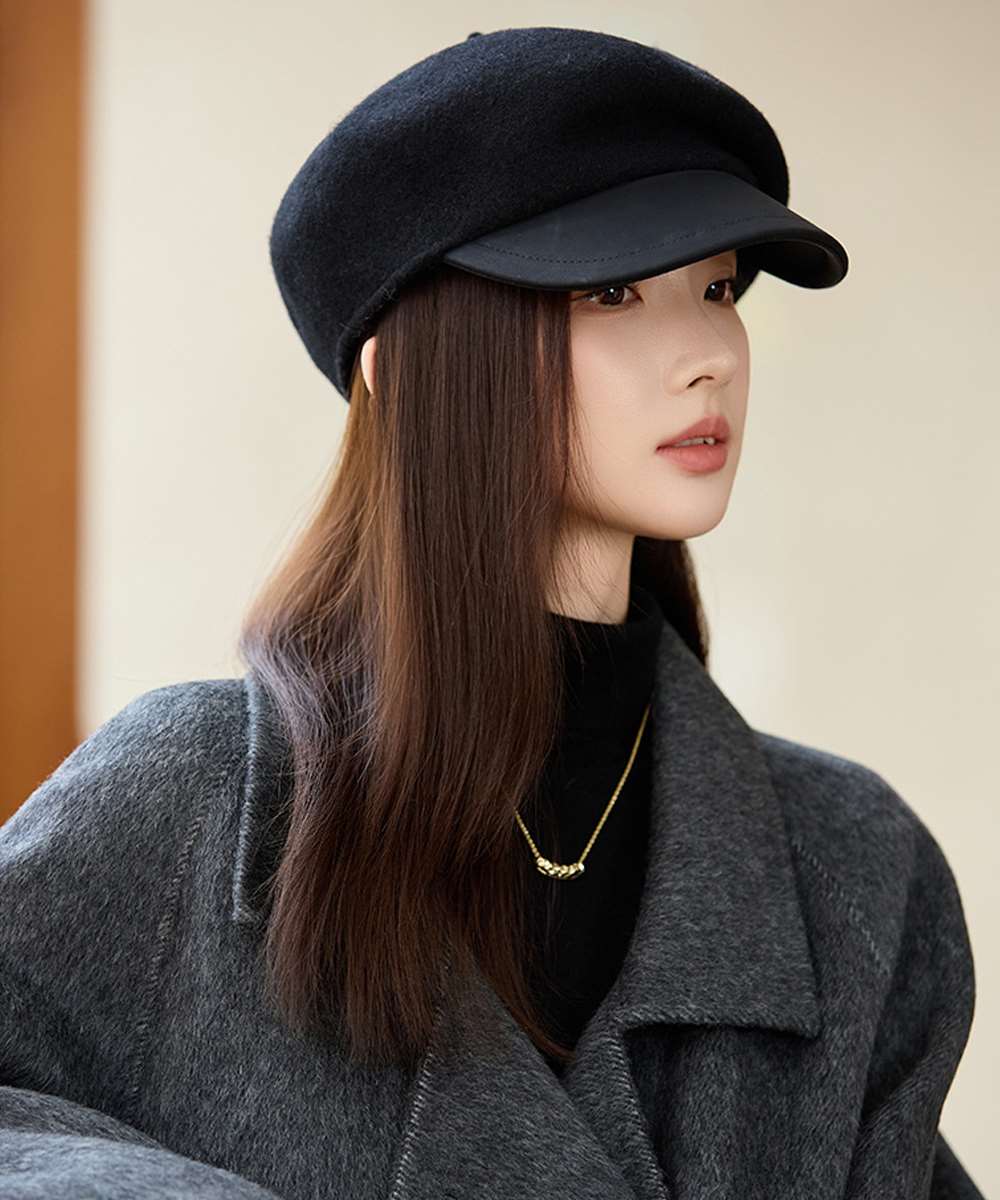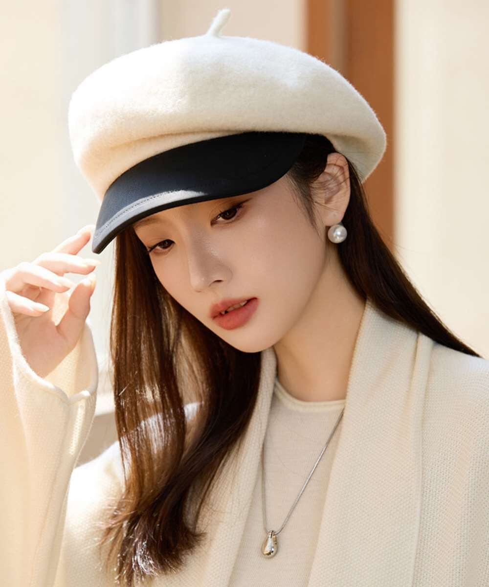 ベレー帽とキャスケットを組み合わせた、トレンド感のあるつば付き帽子。