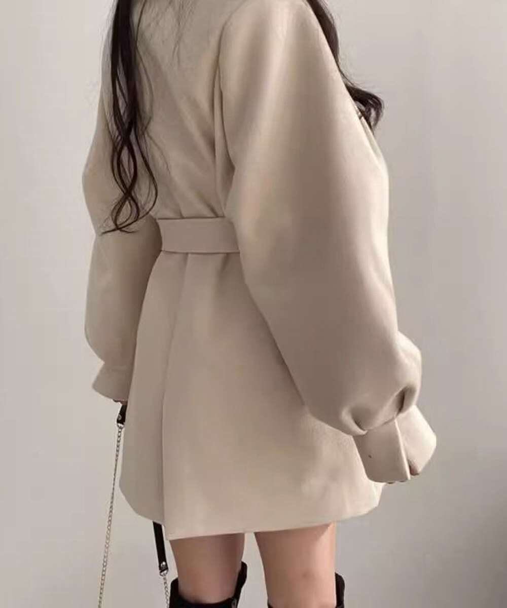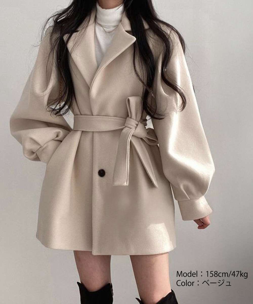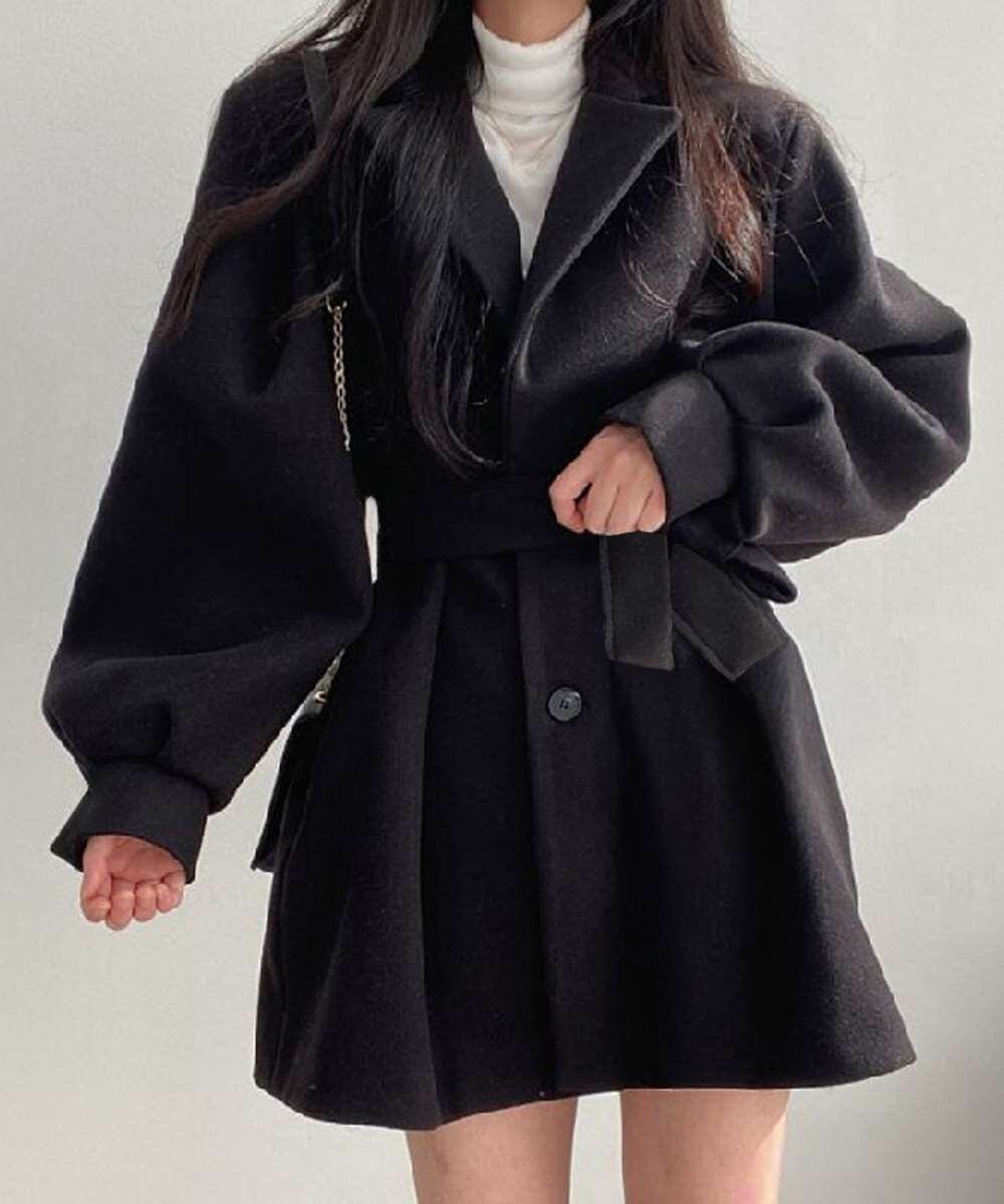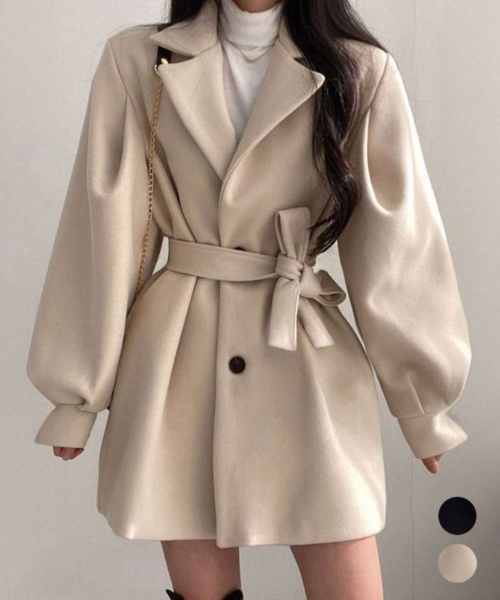 立体的なシルエットとウエストベルトで、スタイルアップ見えと暖かさを両立。